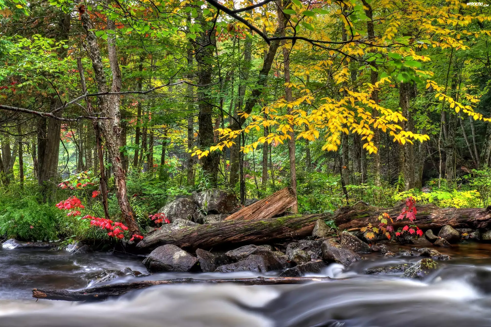 Zdjęcia, Jesień, Las, Kamienie, Rzeka