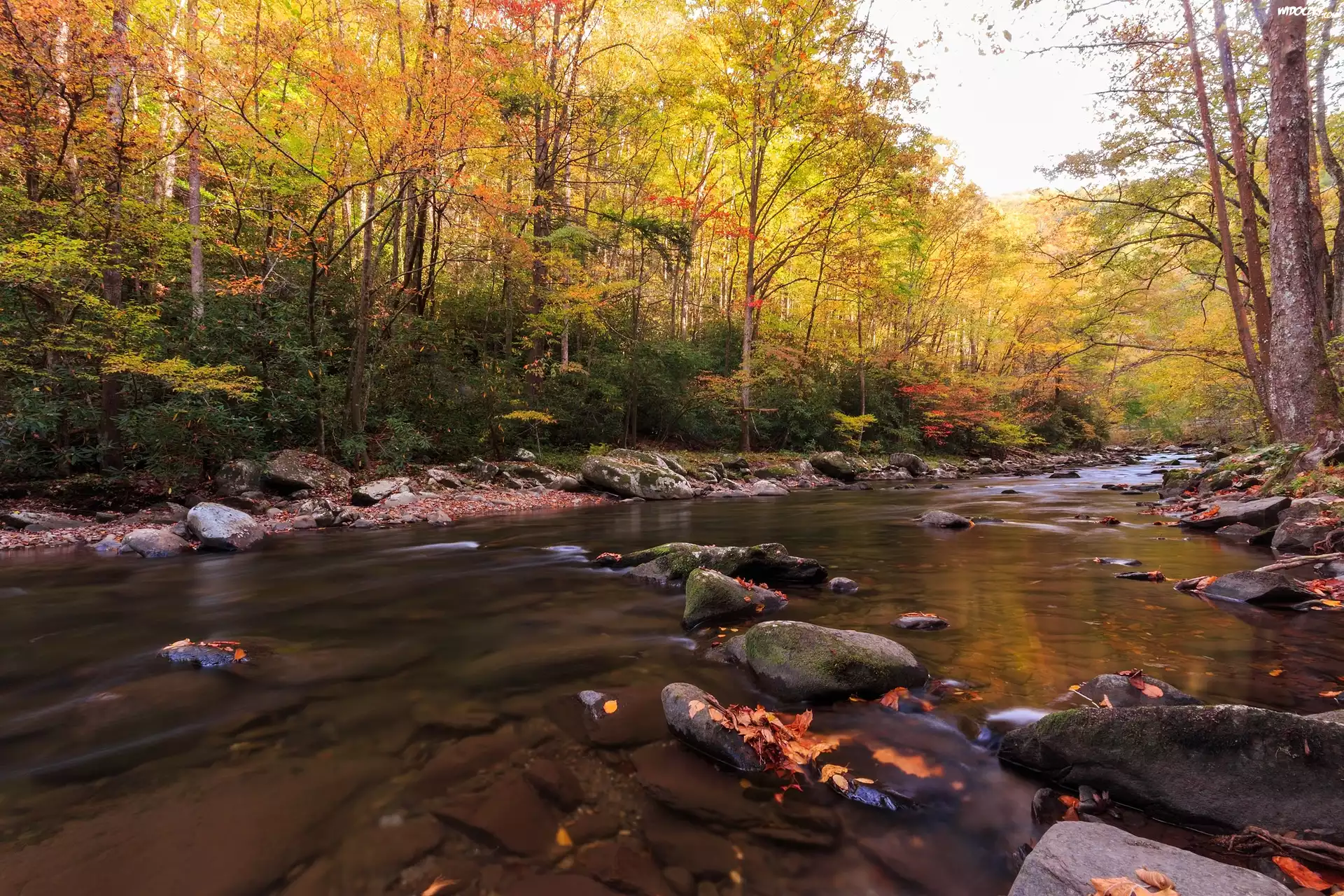 Zdjęcia, Jesień, Las, Kamienie, Rzeka
