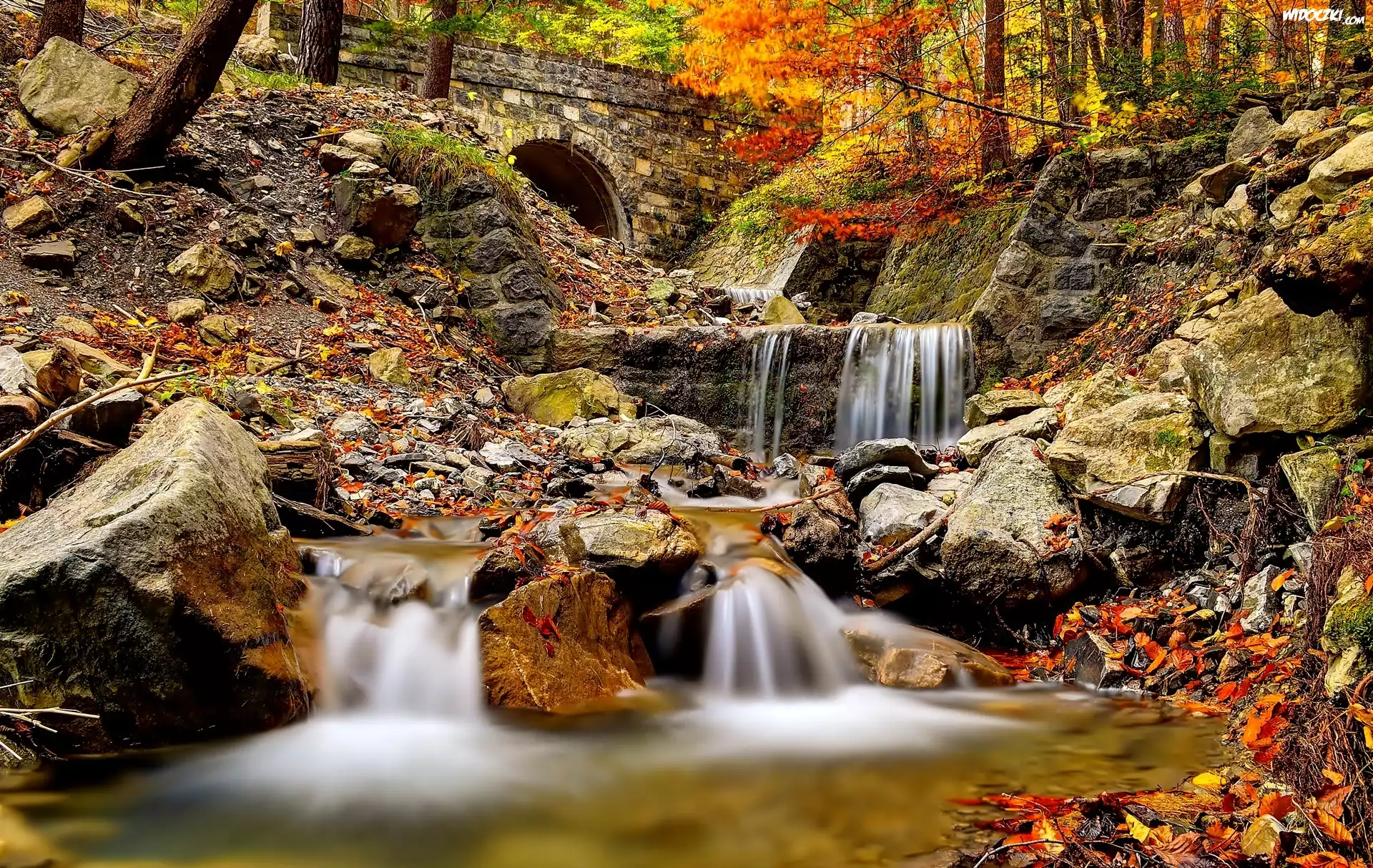 Zdjęcia, Jesień, Las, Kamienie, Wodospad