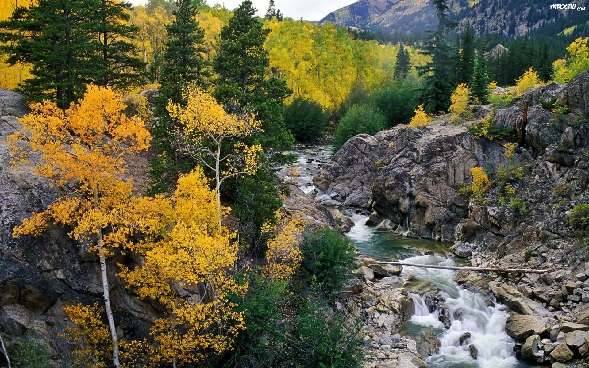 Zdjęcia, Jesień, Góry, Lasy, Kamienie, Rzeka