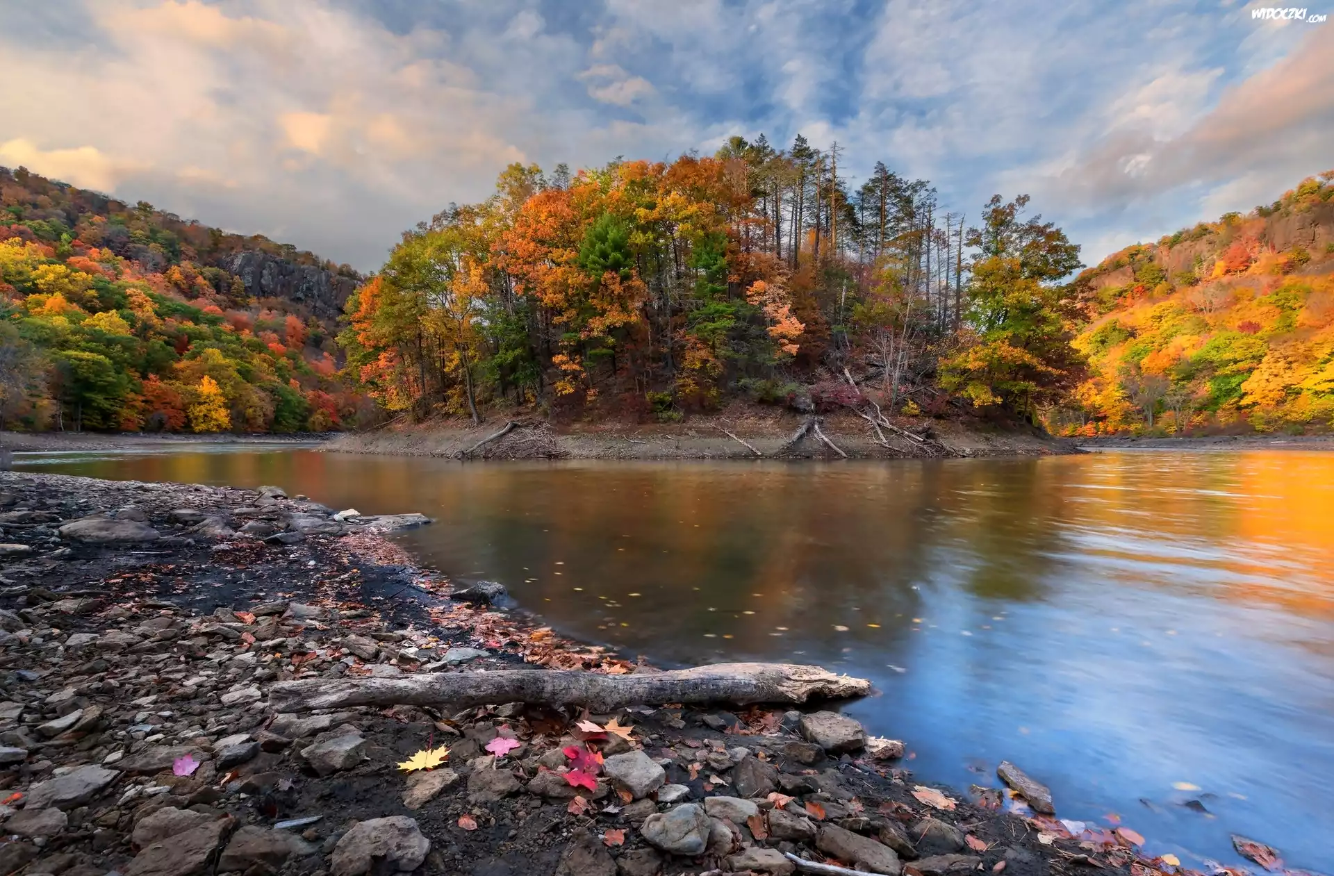 Zdjęcia, Jesień, Rzeka, Kamienie, Drzewa
