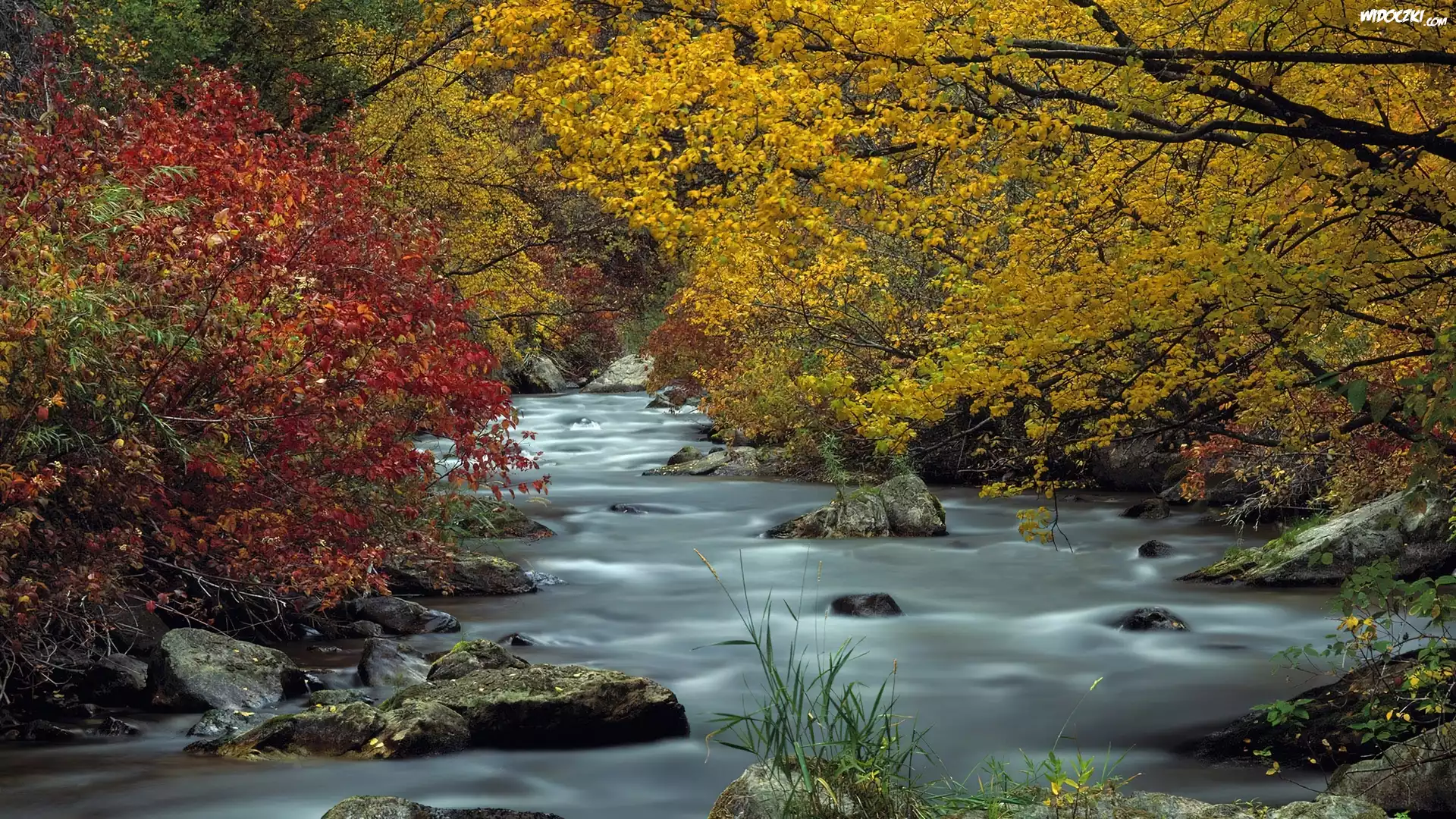 Zdjęcia, Jesień, Rzeka, Kamienie, Drzewa