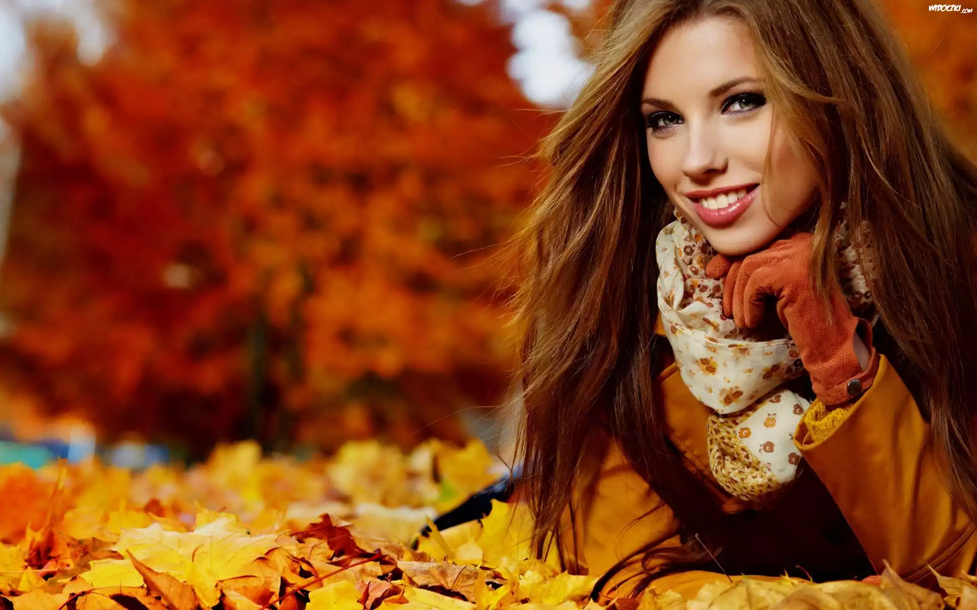 Zdjęcia, Kobieta, Jesień, Liście