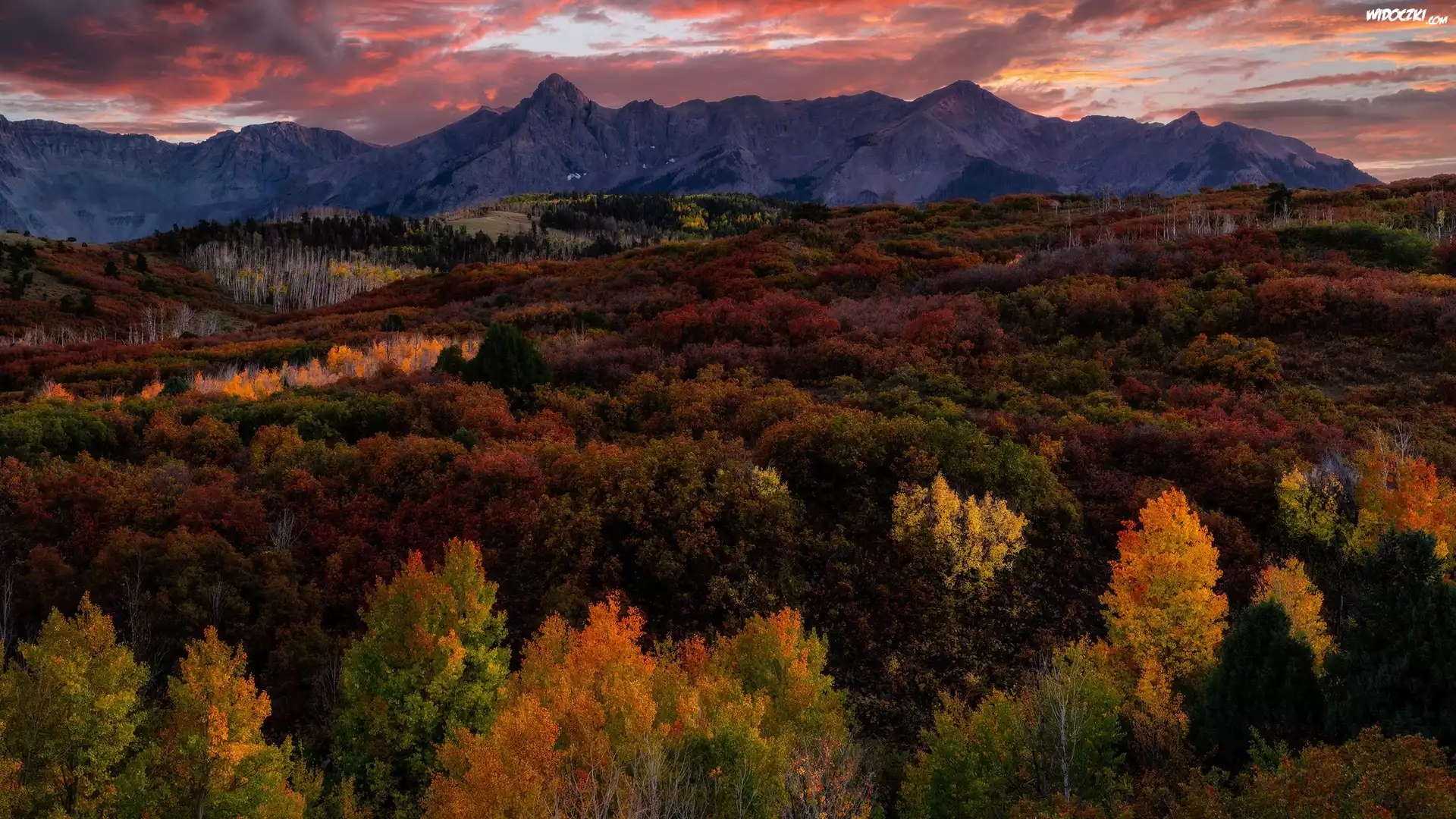 Zdjęcia, Stany Zjednoczone, Kolorado, Dallas Divide, Góry, Lasy, Jesień