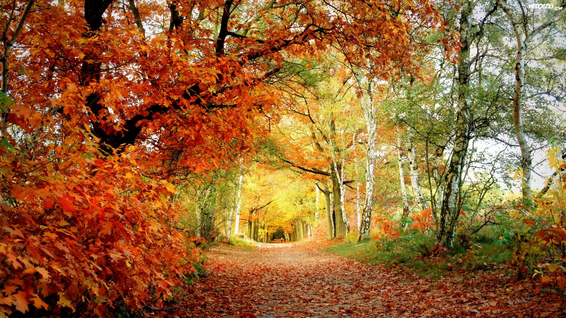 Jesień, Aleja, Drzewa, Kolorowe, Liście