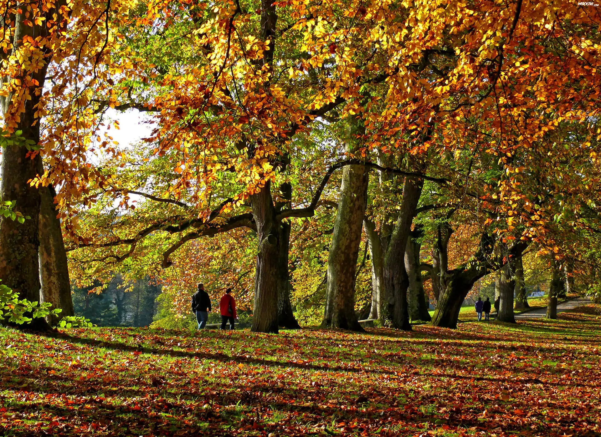 Jesień, Park, Drzewa, Aleja, Kolorowe, Liście