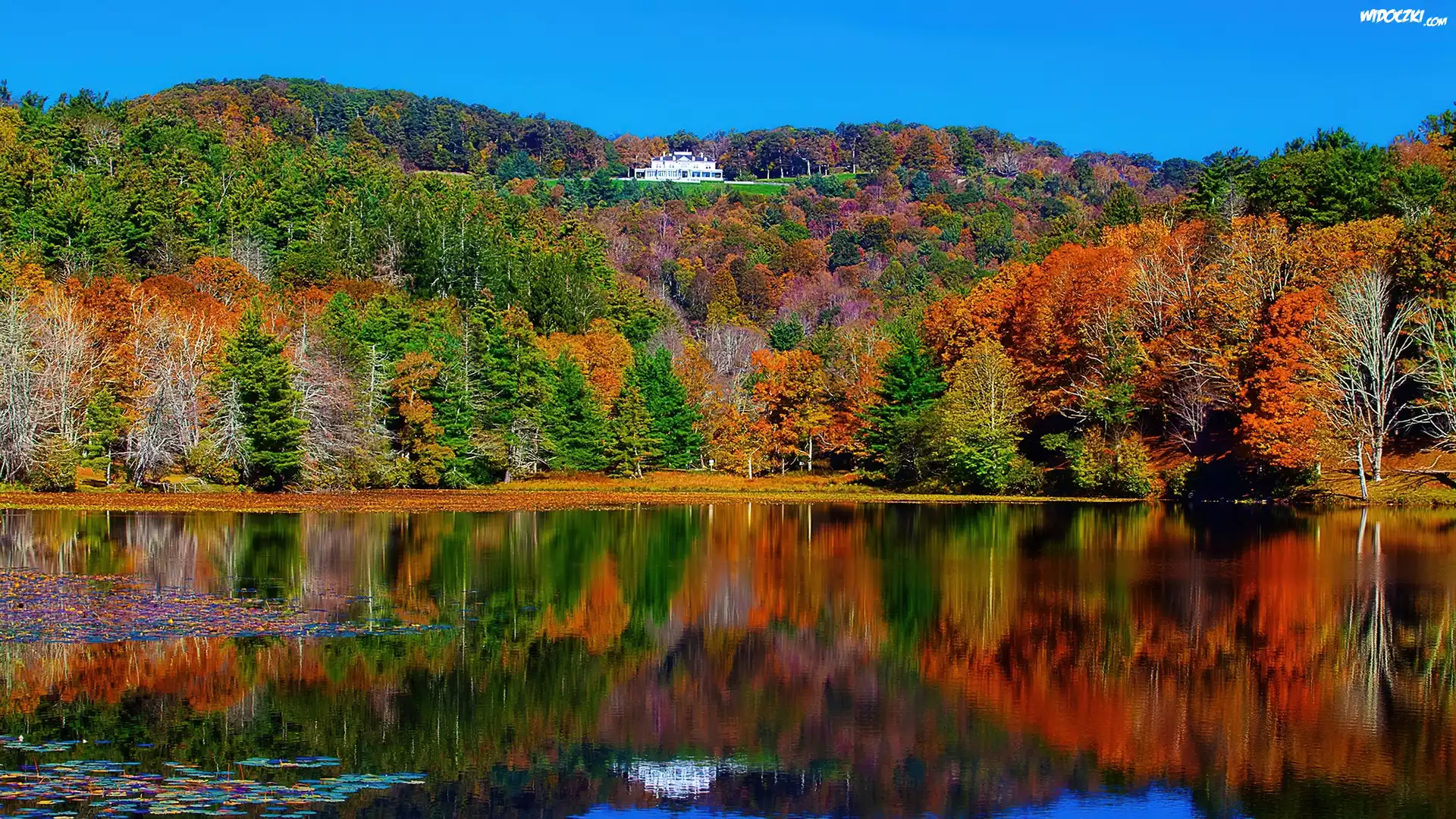 Zdjęcia, Jesień, Woda, Drzewa, Kolorowe, Liście