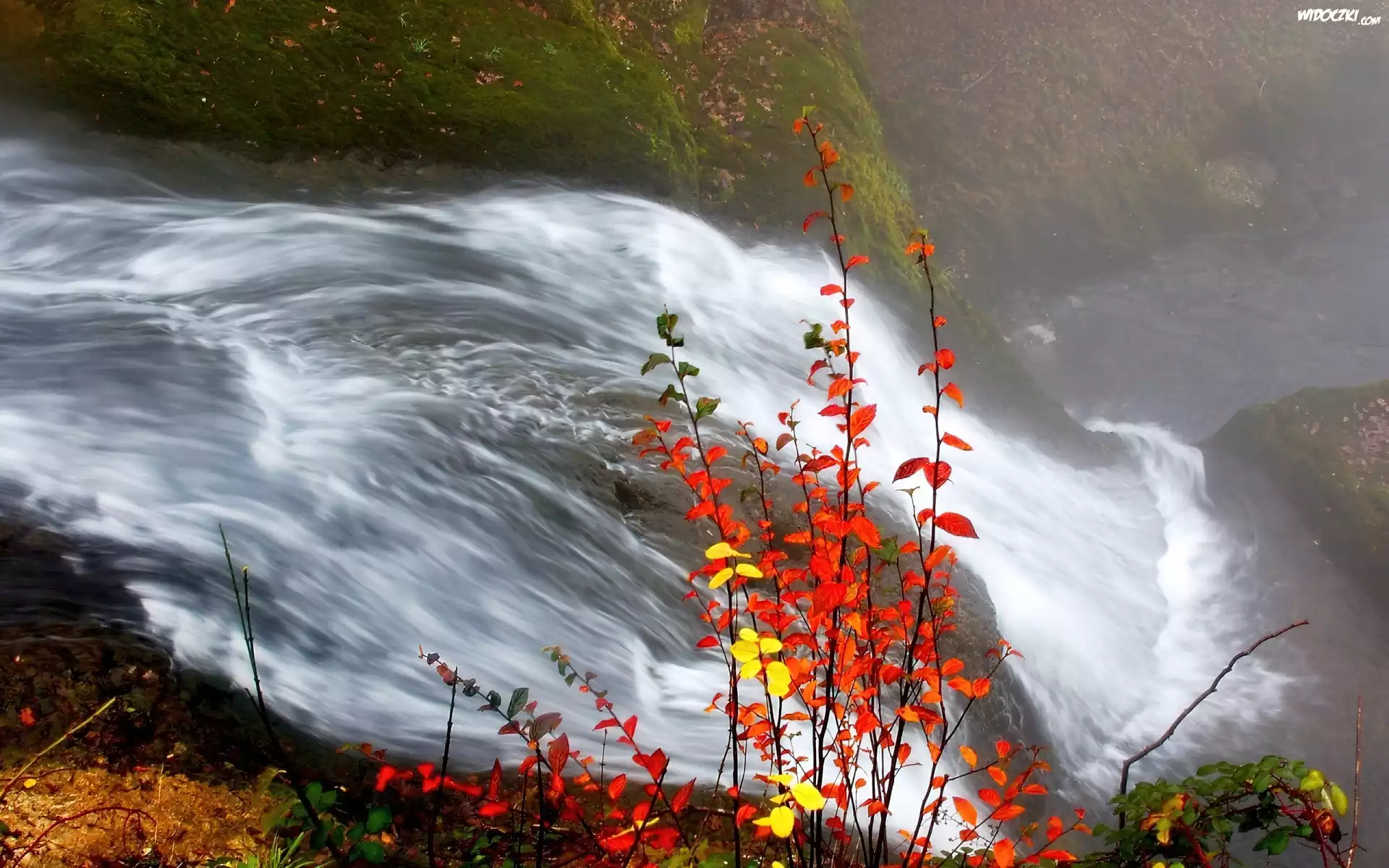 Jesień, Góry, Strumyk, Roślinki, Kolorowe, Liście