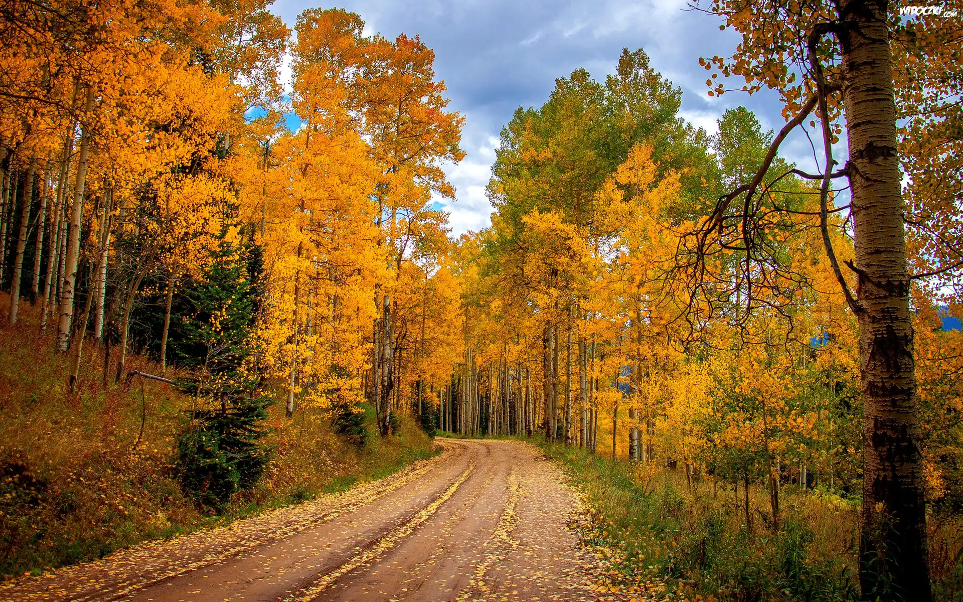 Jesień, Droga, Las, Drzewa