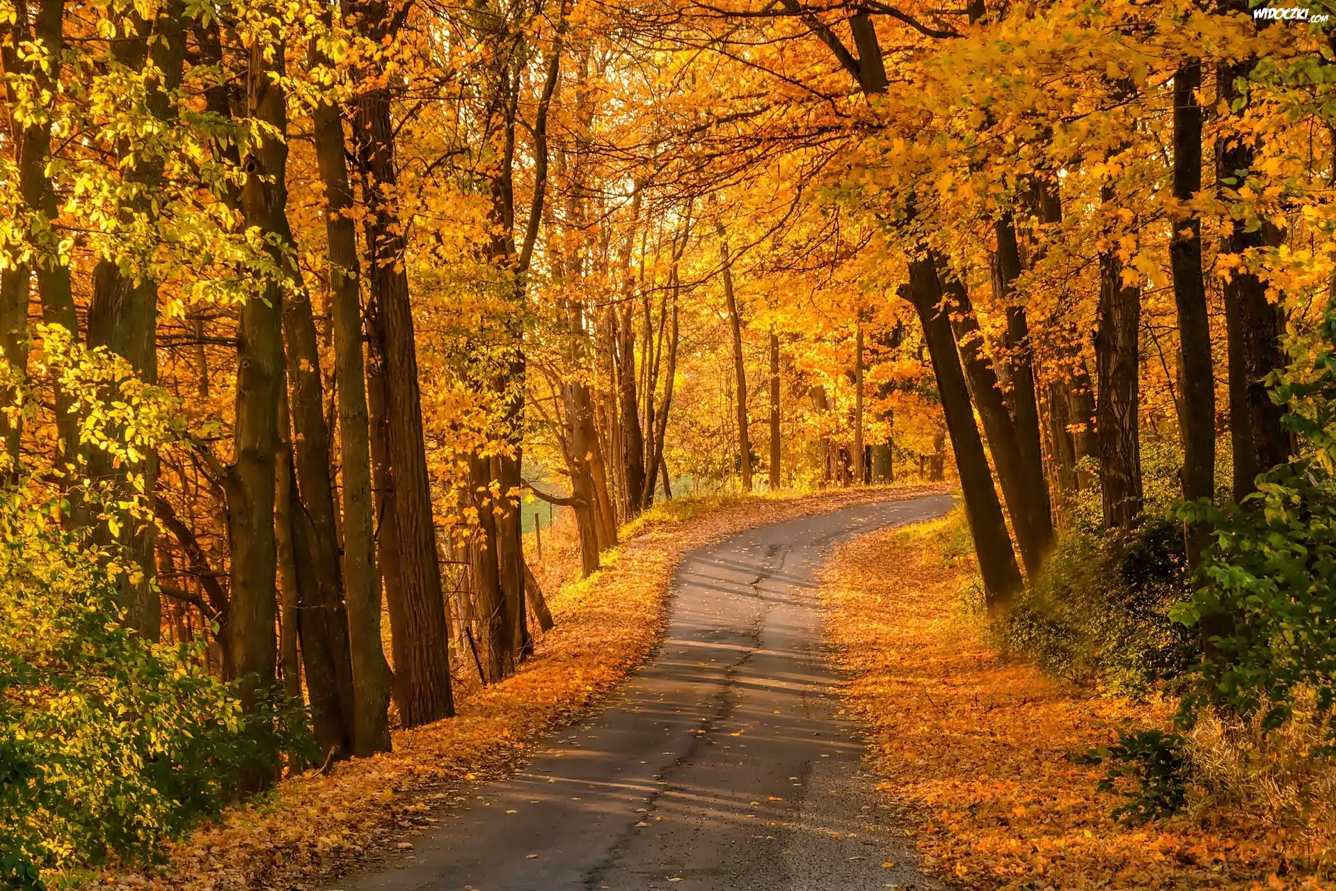 Zdjęcia, Jesień, Droga, Las, Liście