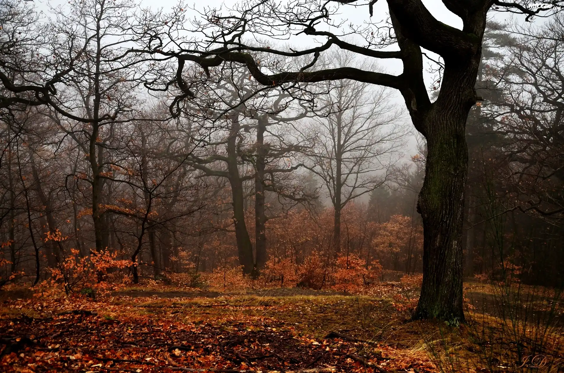 Zdjęcia, Jesień, Drzewa, Las, Mgła