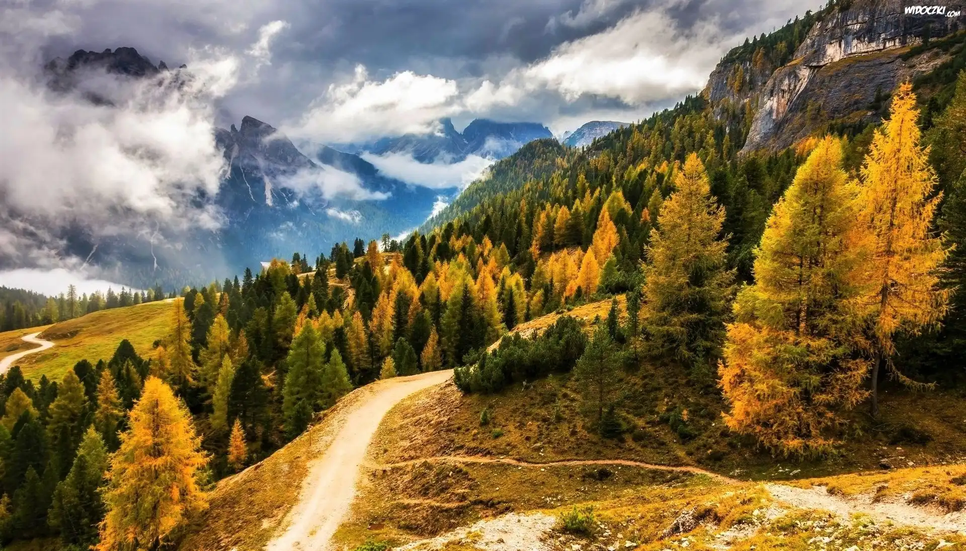 Jesień, Droga, Góry, Wzgórza, Las, Drzewa