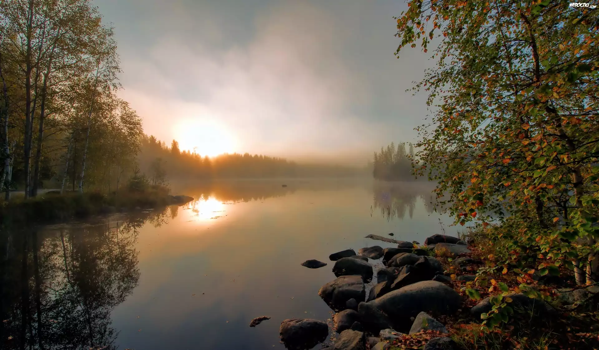 Zdjęcia, Jesień, Świt, Jezioro, Las, Mgła