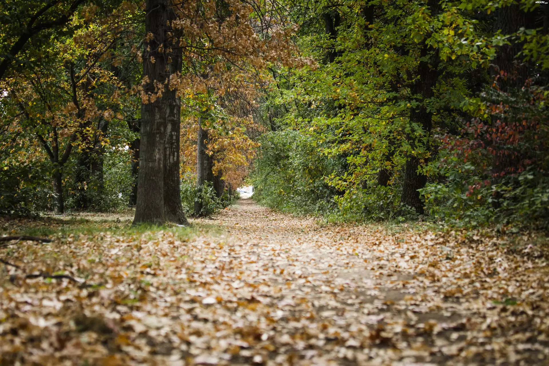 Jesień, Park, Las, Ścieżka