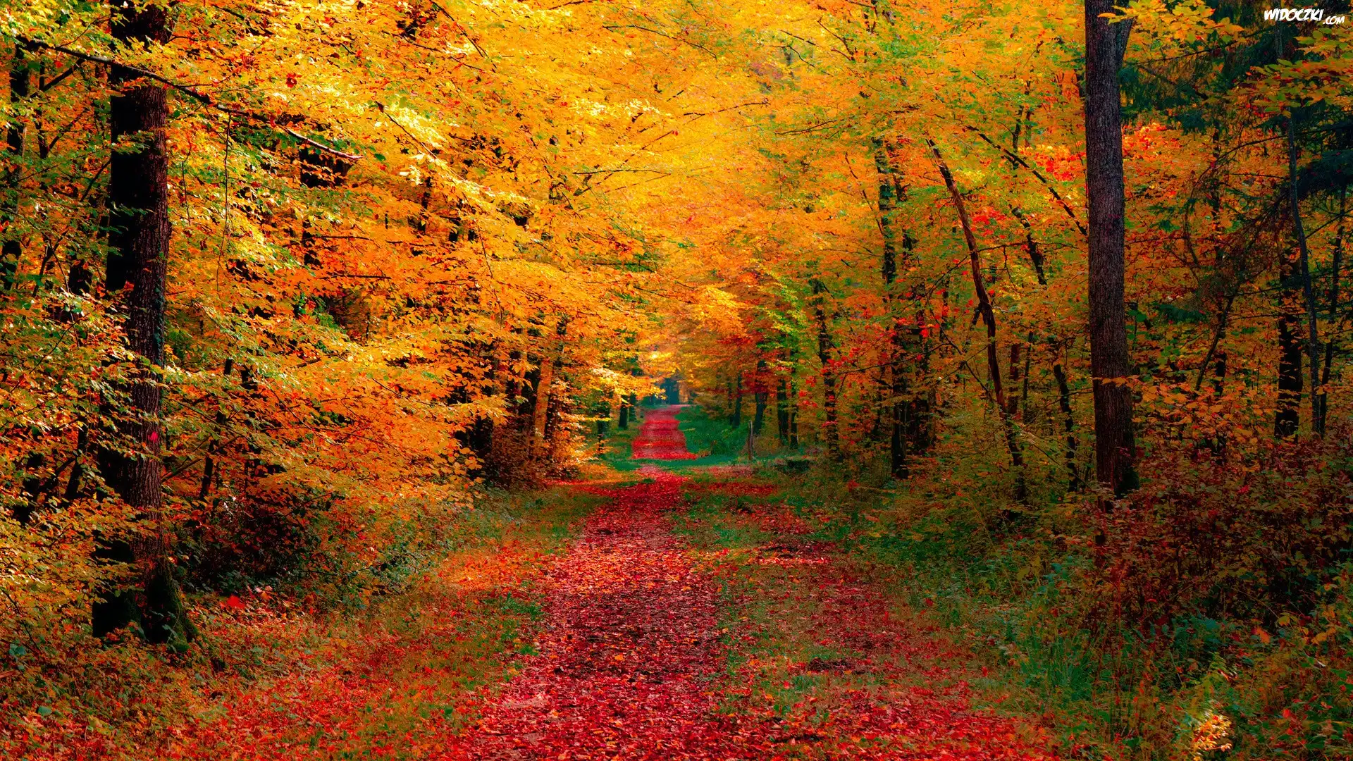 Zdjęcia, Jesień, Droga, Przez, Las, Liściasty
