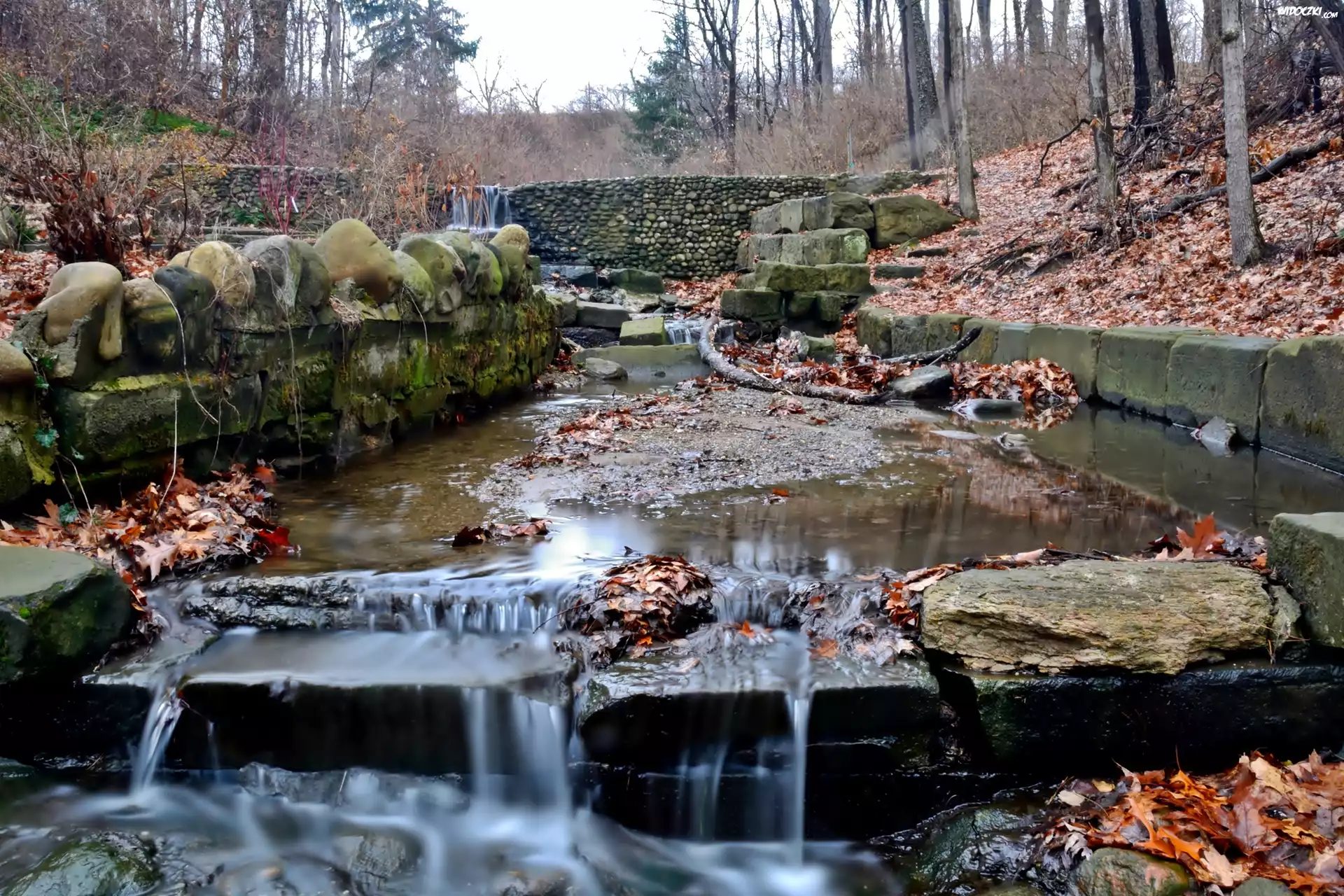 Zdjęcia, Jesień, Wodospad, Skały, Las, Rzeka