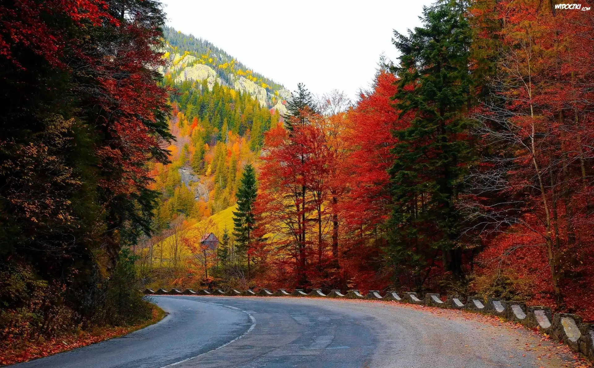 Zdjęcia, Jesień, Droga, Zakręt, Góry, Las, Drzewa