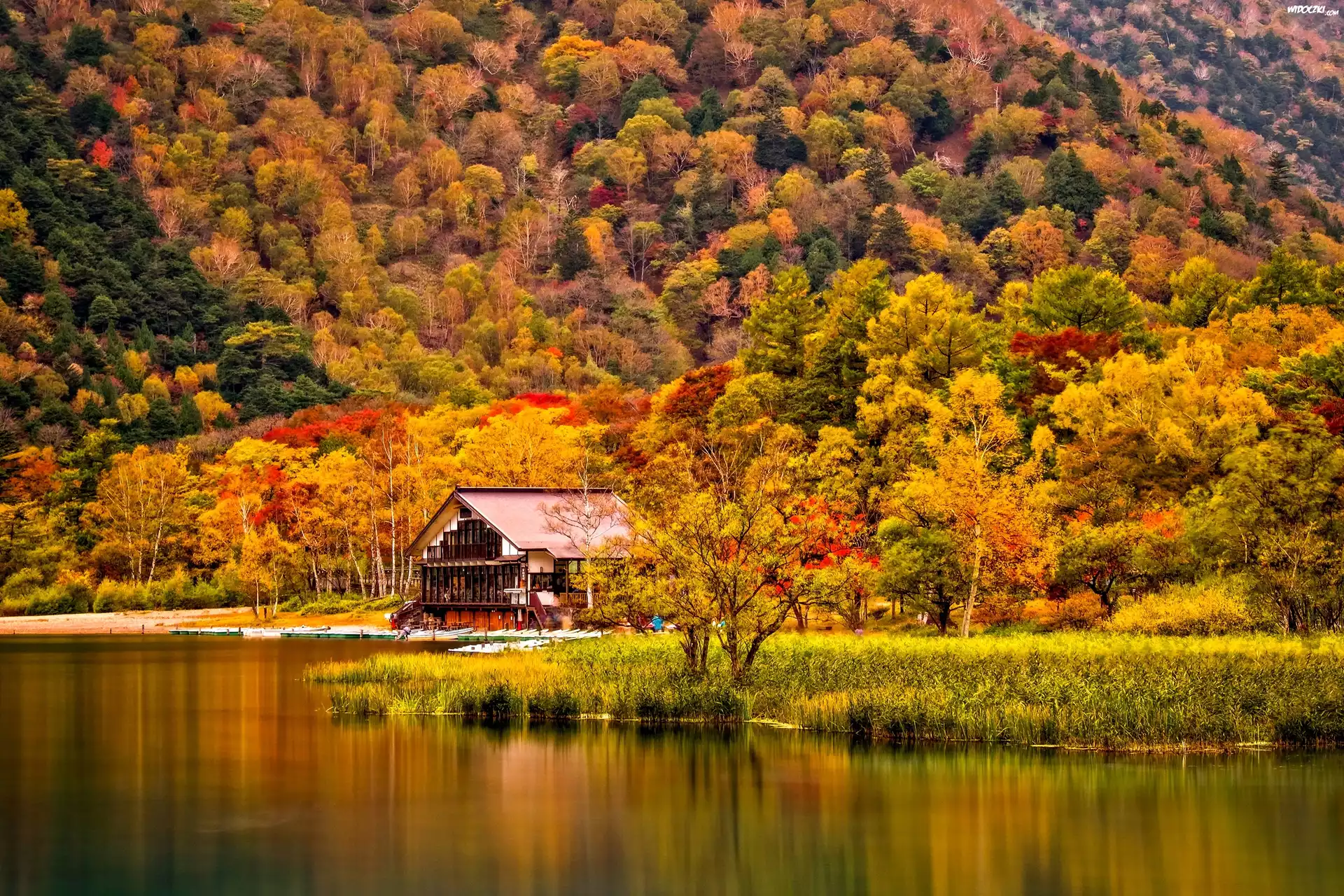 Jesień, Rzeka, Lasy, Dom
