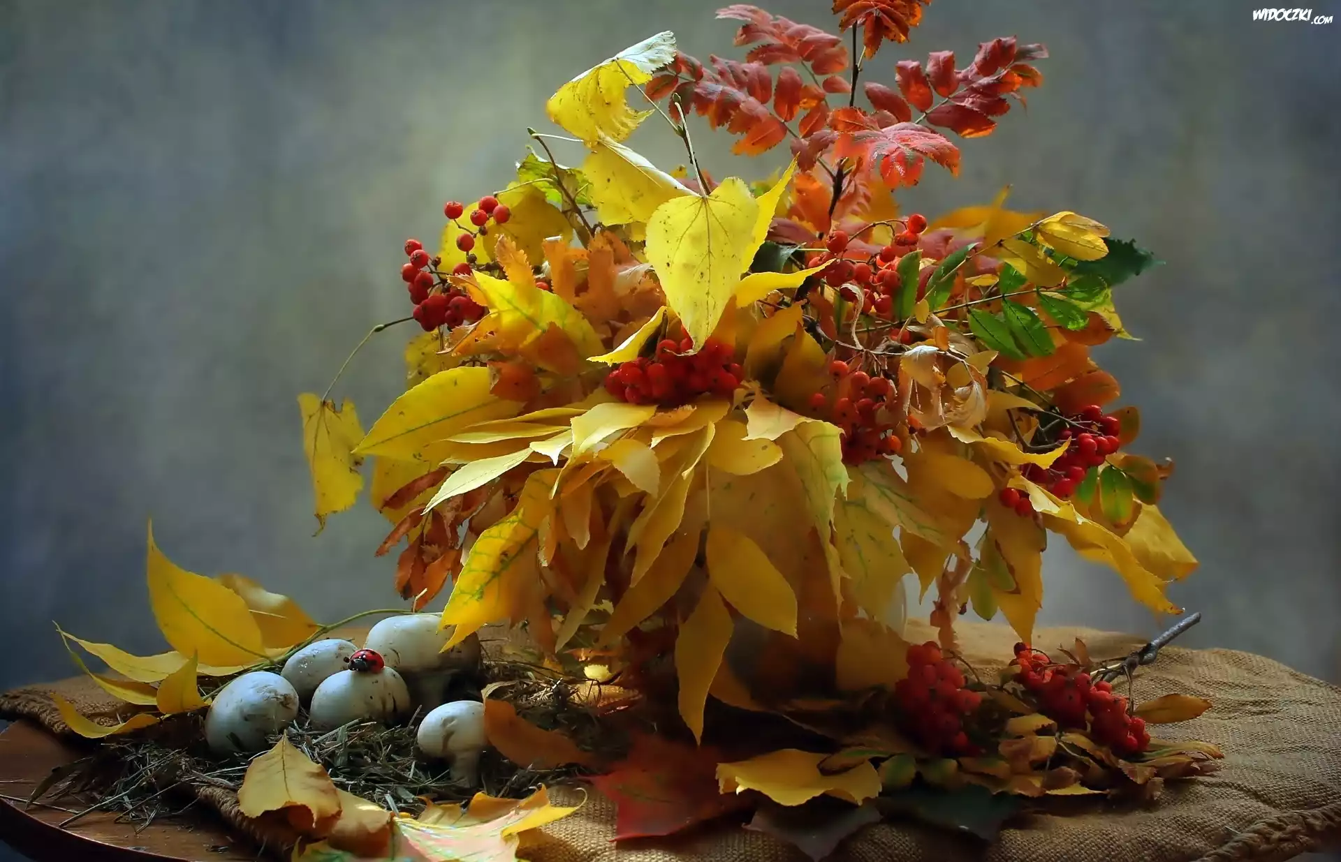 Zdjęcia, Jesień, Bukiet, Liści, Grzyby