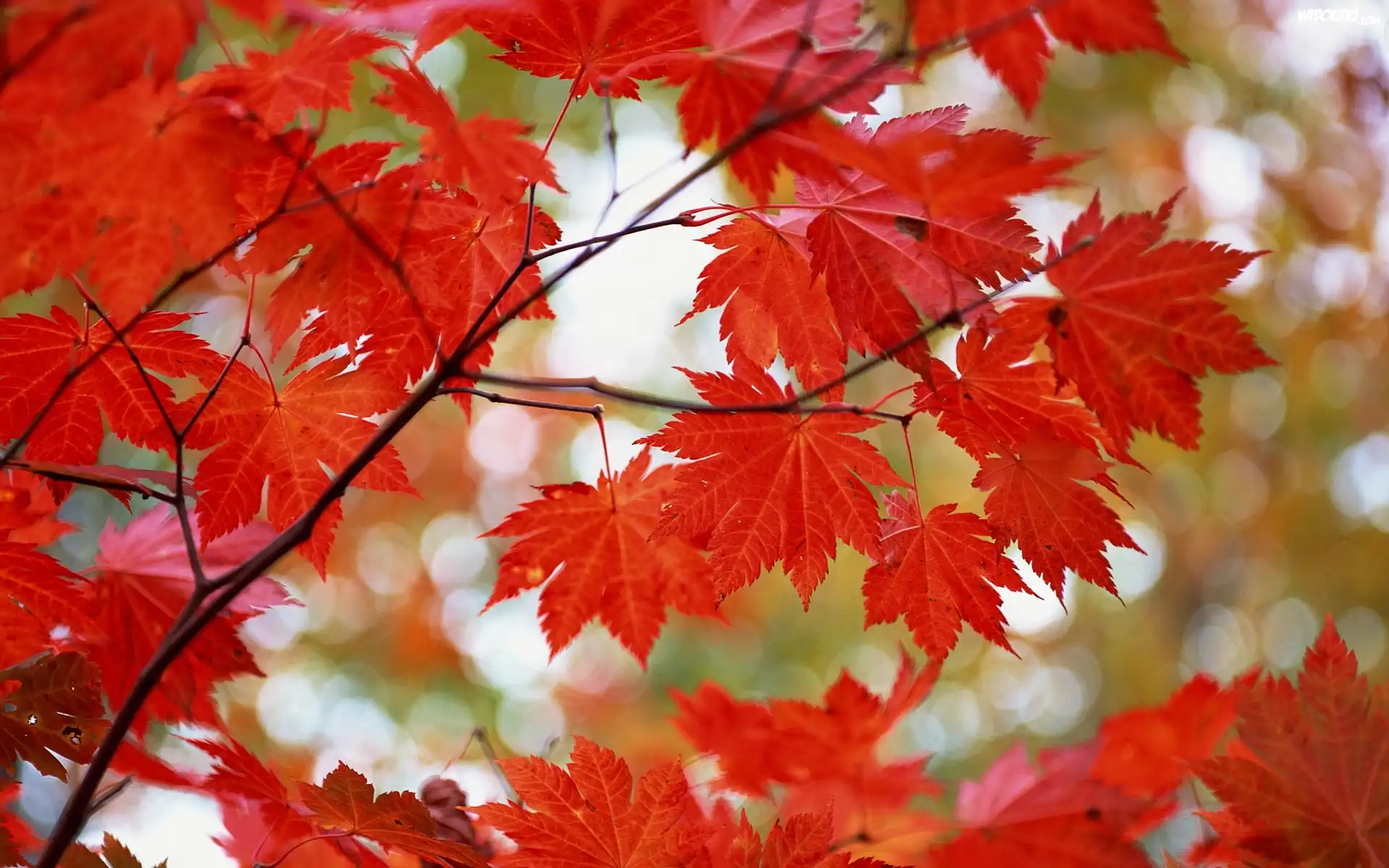 Zdjęcia, Jesień, Czerwone, Liście, Gałązki