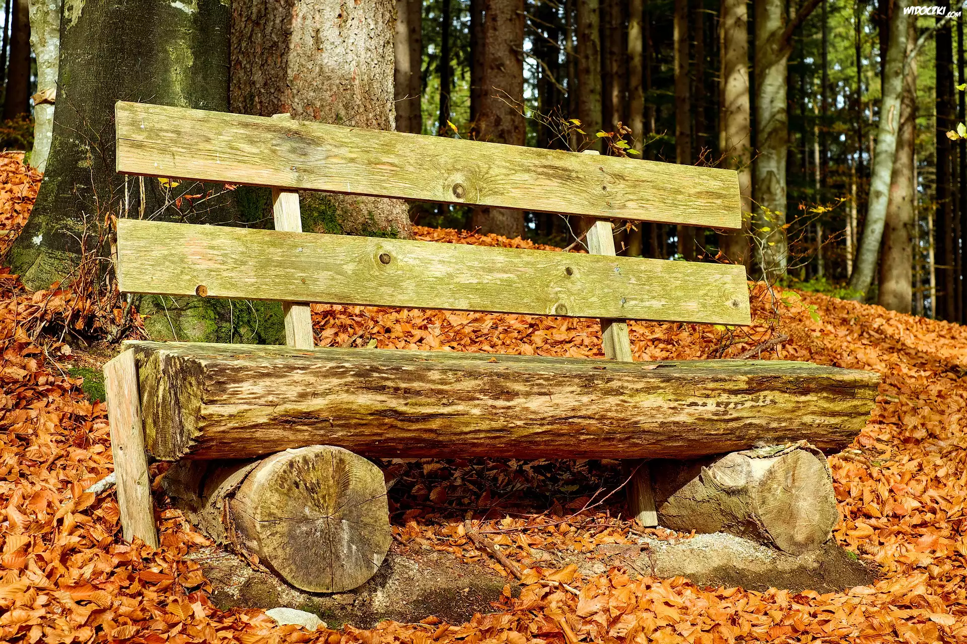 Zdjęcia, Jesień, Drzewa, Liście, Ławka