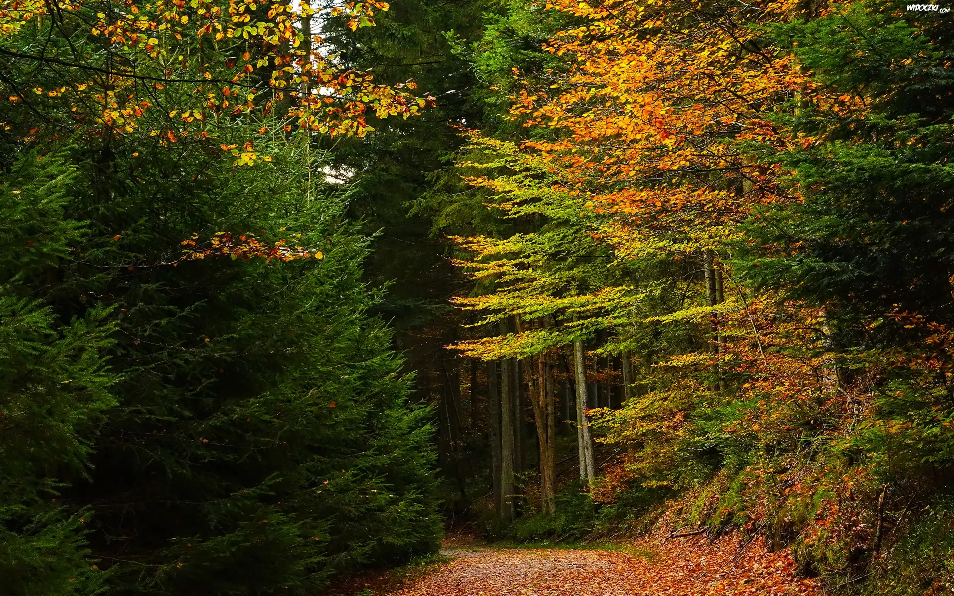Jesień, Las, Drzewa, Opadłe, Liście, Ścieżka