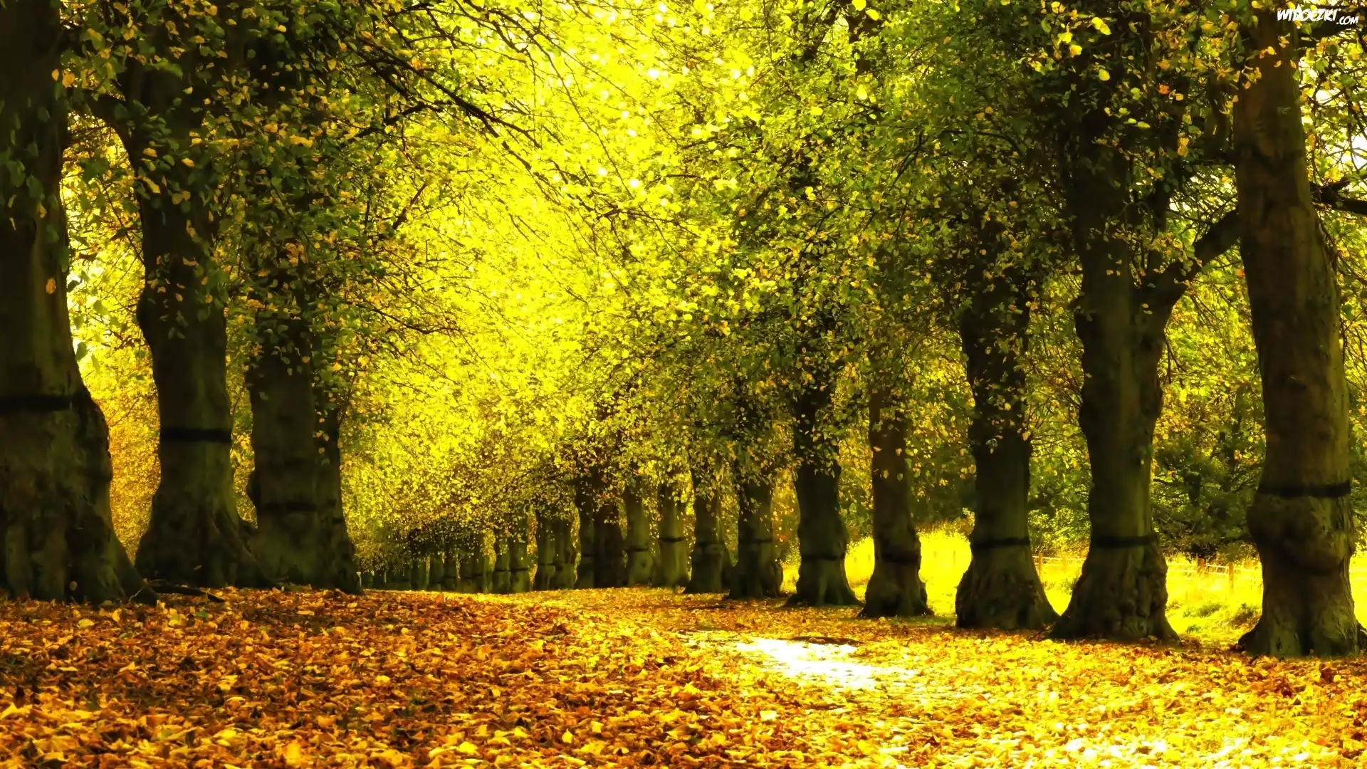 Zdjęcia, Jesień, Park, Drzewa, Liście, Aleja