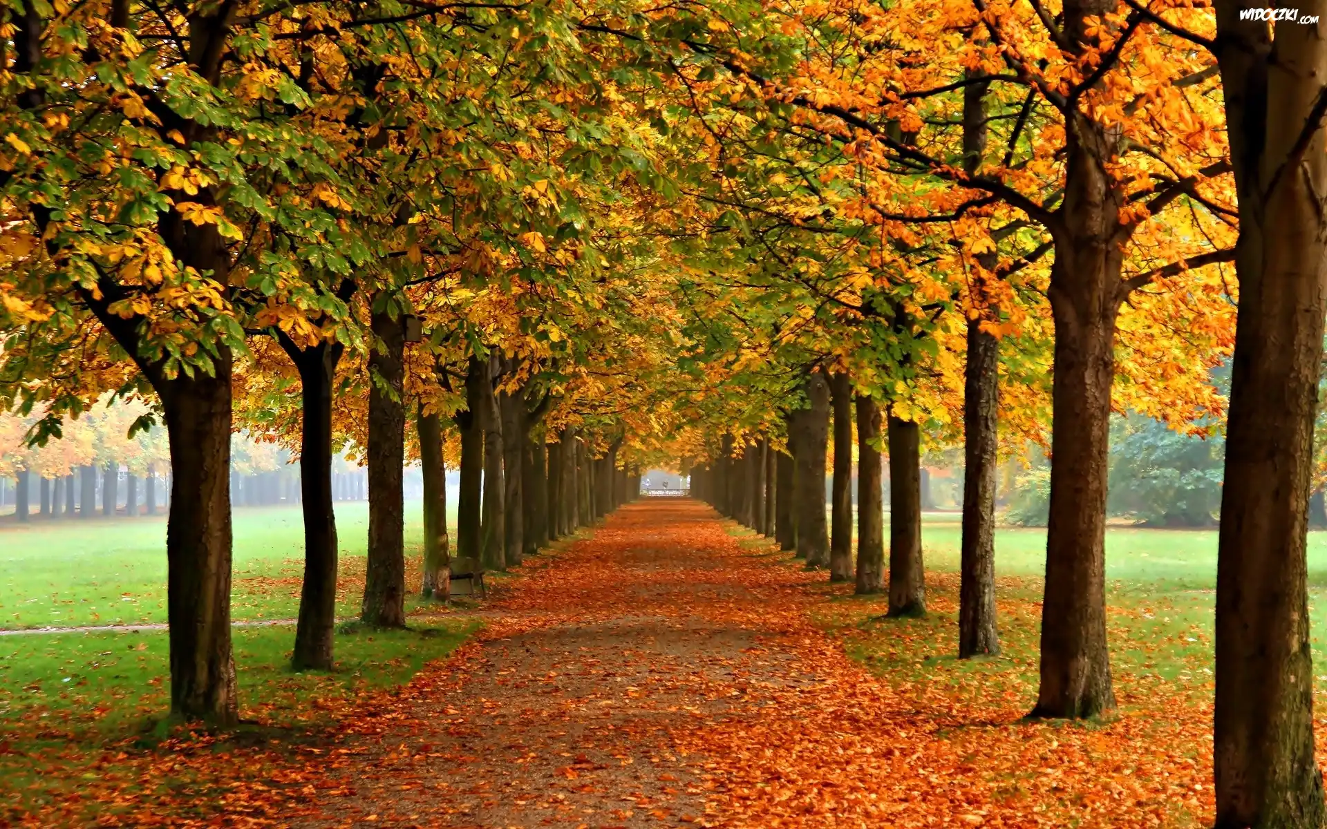 Zdjęcia, Jesień, Drzewa, Kasztany, Liście, Park
