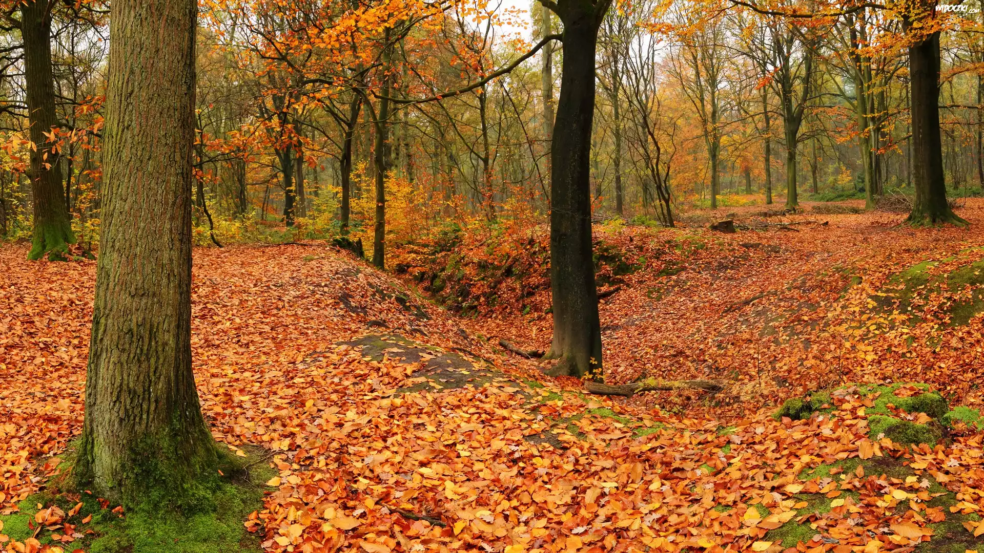 Zdjęcia, Jesień, Las, Liście, Drzewa
