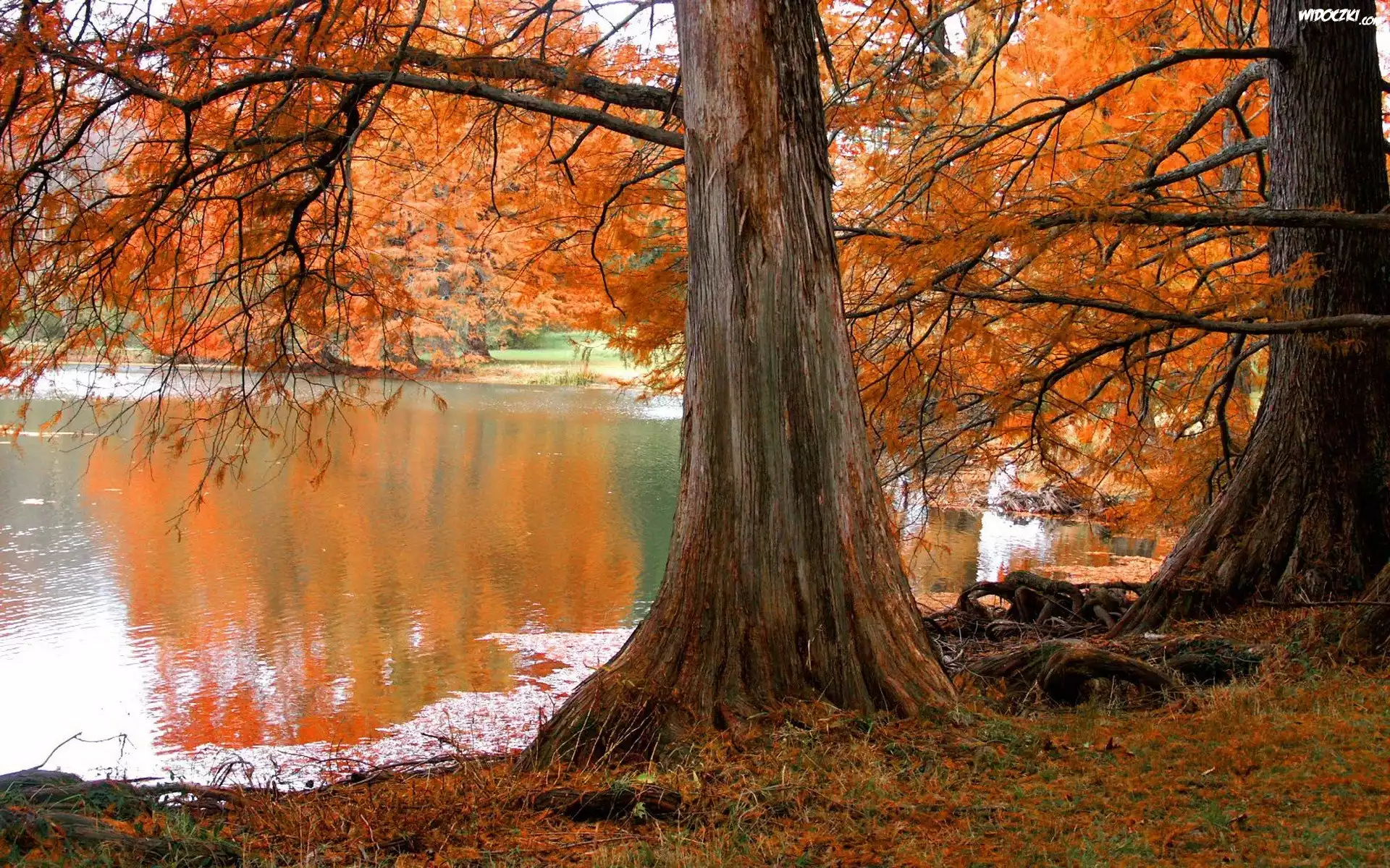 Zdjęcia, Jesień, Drzewa, Żółte, Liście, Staw