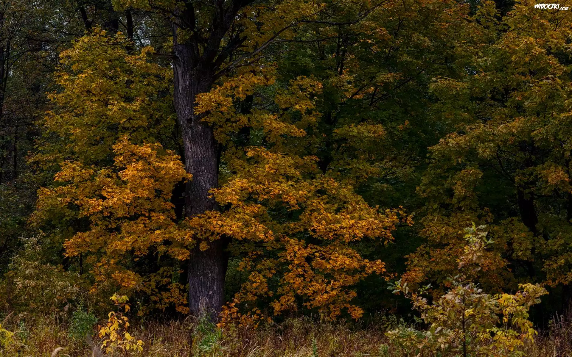 Zdjęcia, Jesień, Drzewa, Pożółkłe, Liście, Las