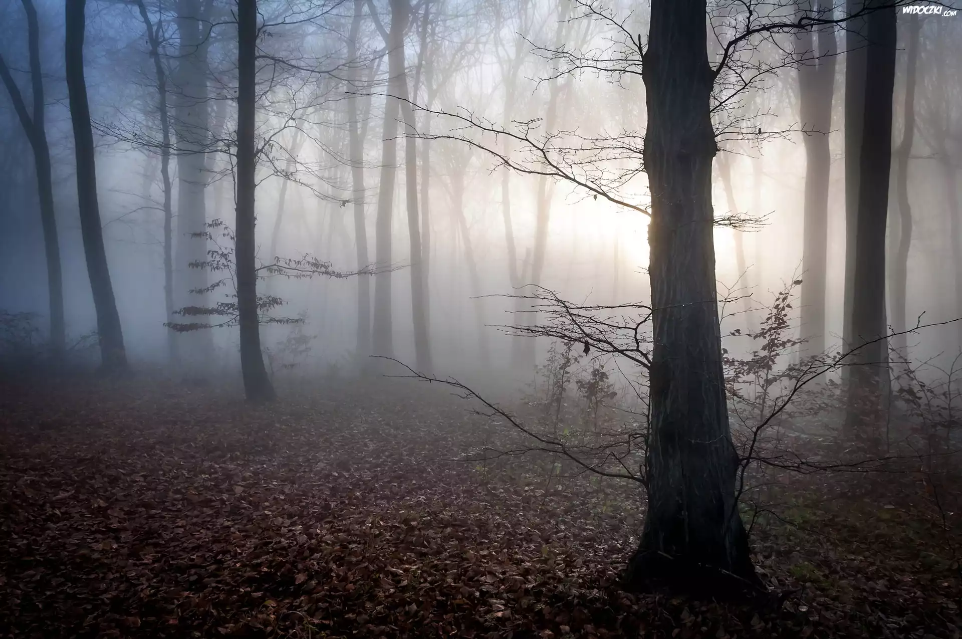 Zdjęcia, Jesień, Las, Mgła, Drzewa