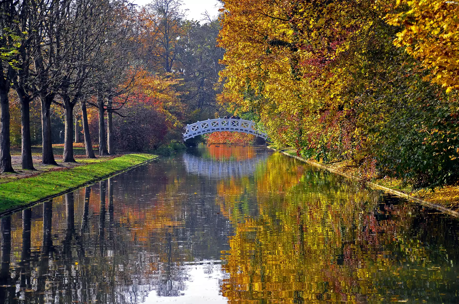 Zdjęcia, Jesień, Rzeka, Most, Drzewa