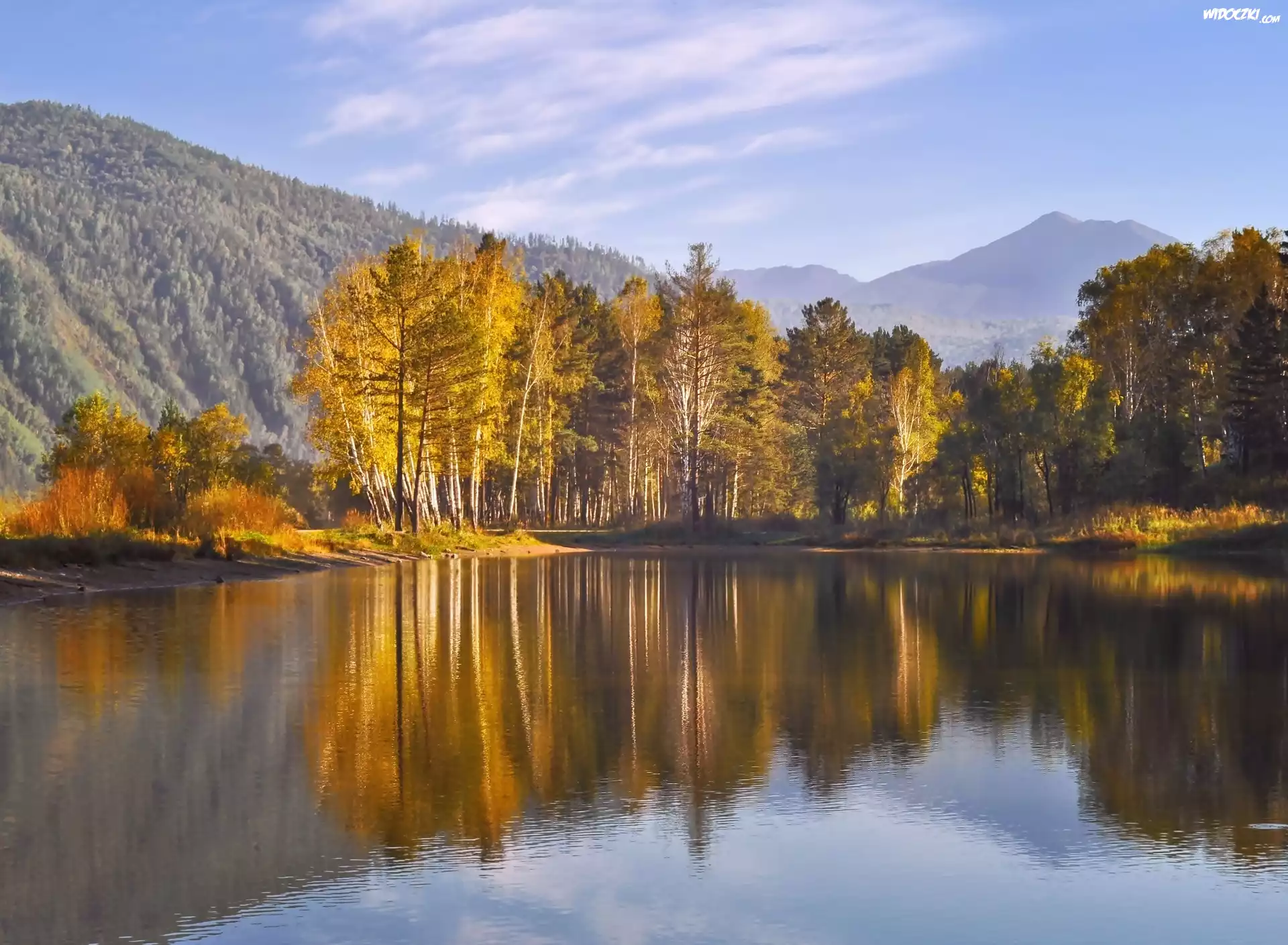 Jesień, Las, Jezioro, Odbicie, Wzgórza