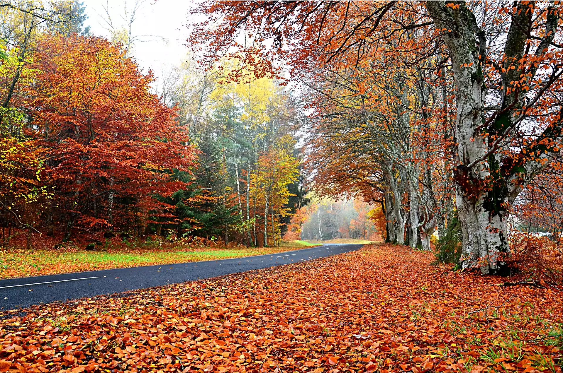 Zdjęcia, Jesień, Las, Droga, Żółte, Liście