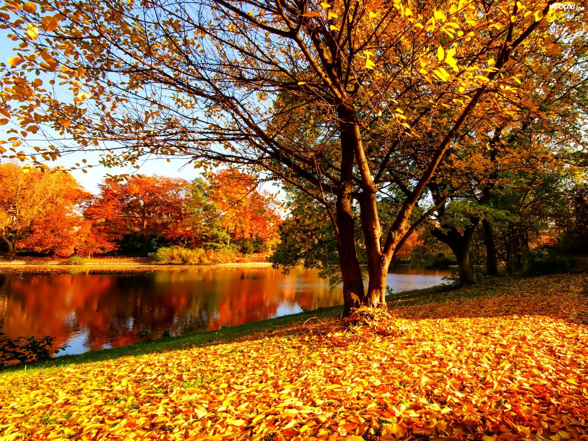 Zdjęcia, Jesień, Park, Rzeka, Żółte, Liście