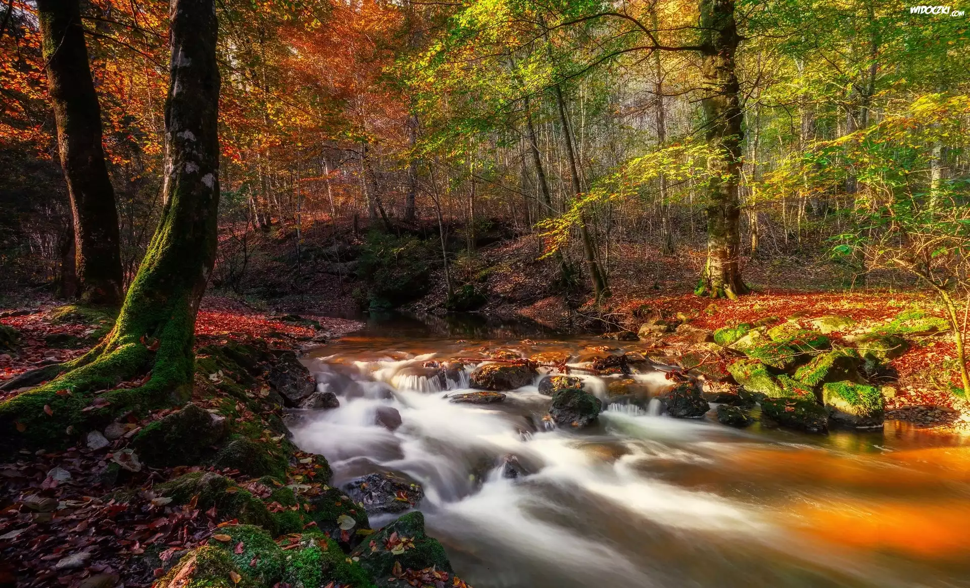 Jesień, Las, Rzeczka, Omszałe, Kamienie