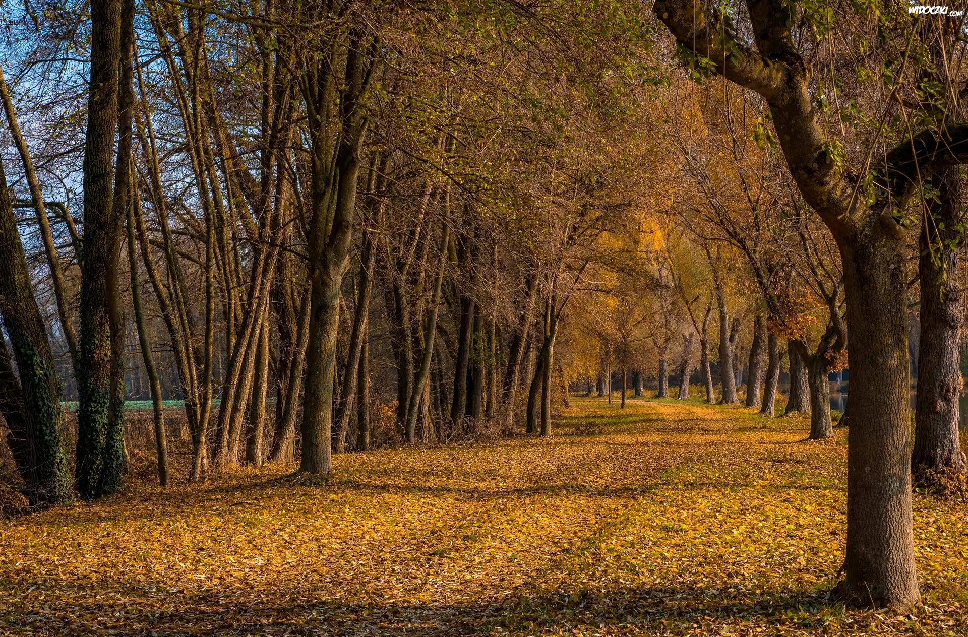 Zdjęcia, Jesień, Droga, Drzewa, Opadłe, Liście