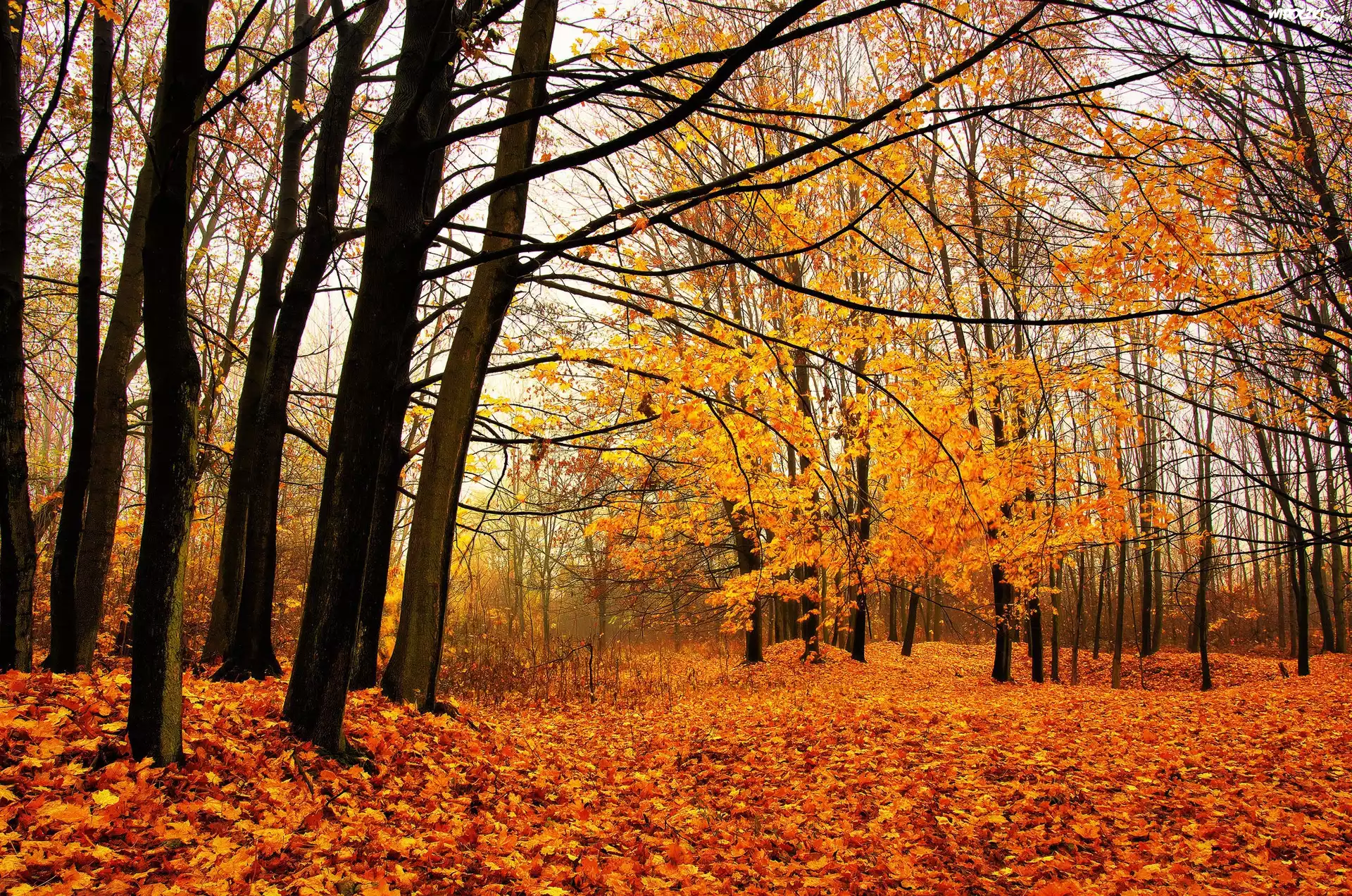 Jesień, Drzewa, Las, Opadłe, Liście