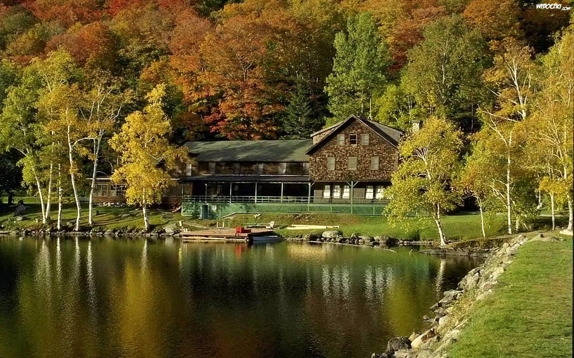 Jesień, Las, Jezioro, Ośrodek, Wypoczynkowy