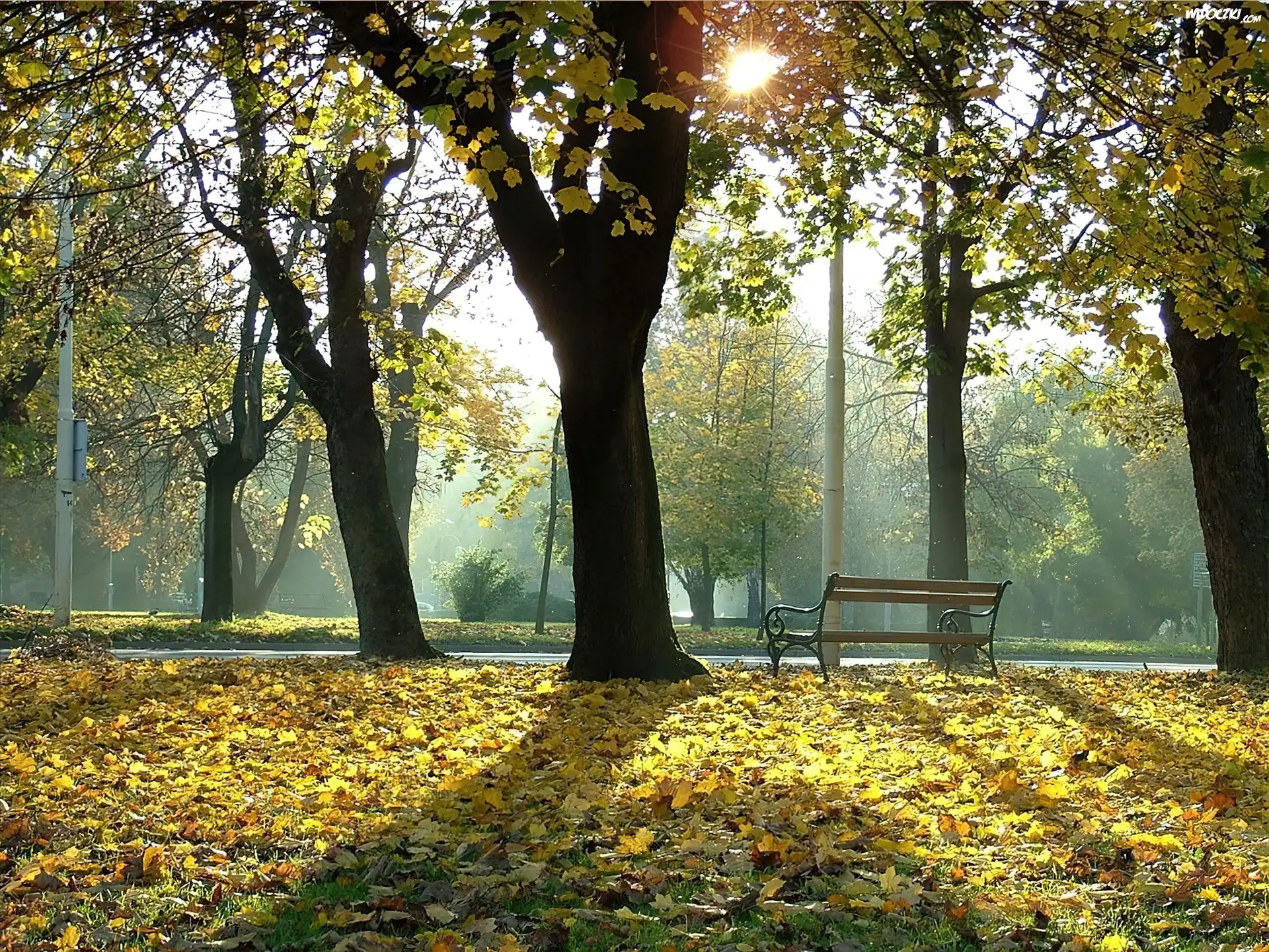 Zdjęcia, Park, Jesień, Ławeczka