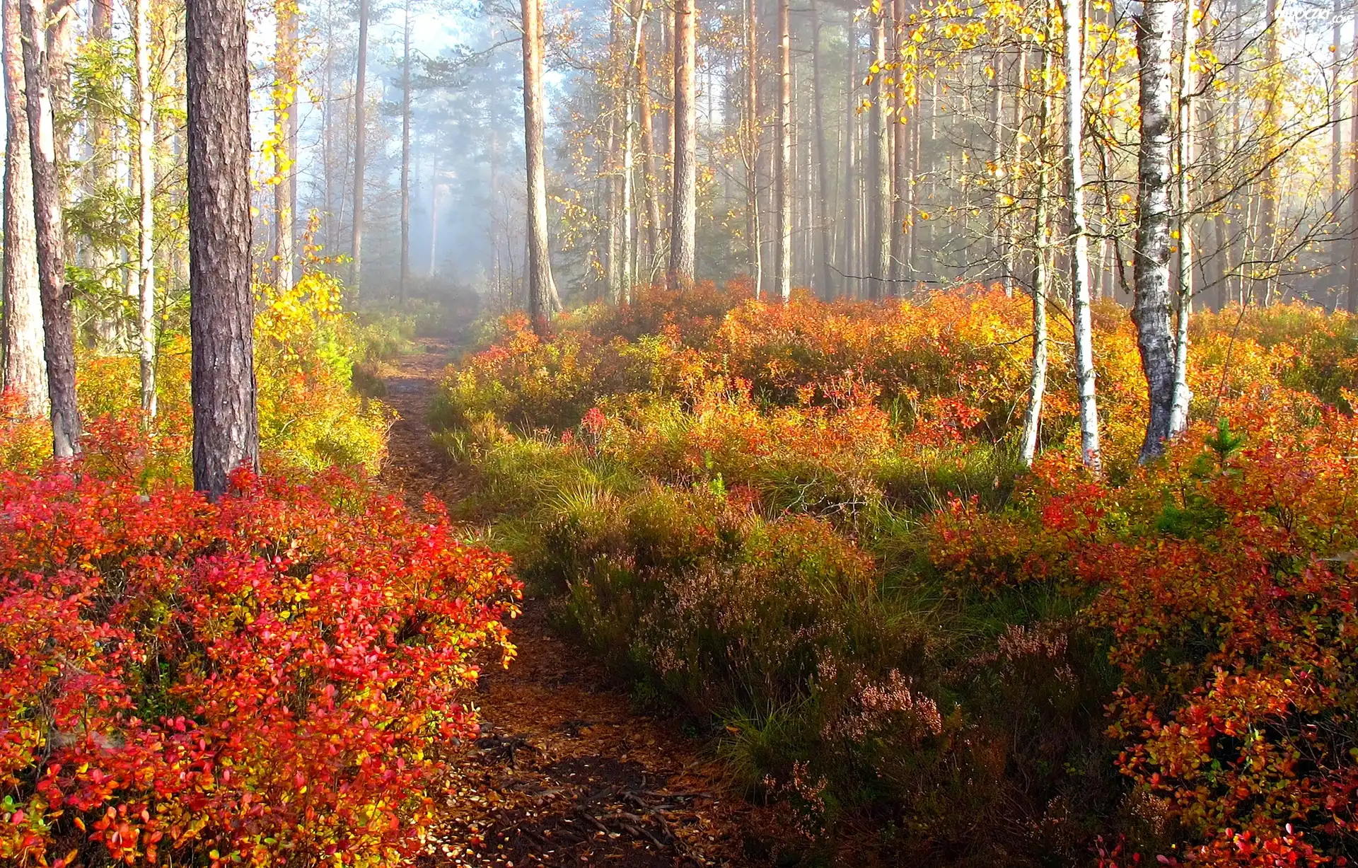 Zdjęcia, Jesień, Las, Ścieżka, Poranek, Mgła