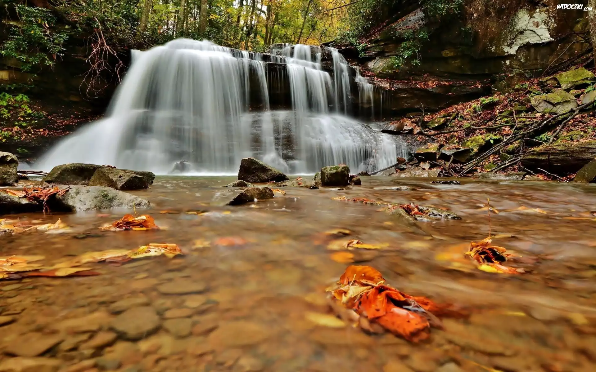 Zdjęcia, Jesień, Wodospad, Liście, Potok, Drzewa