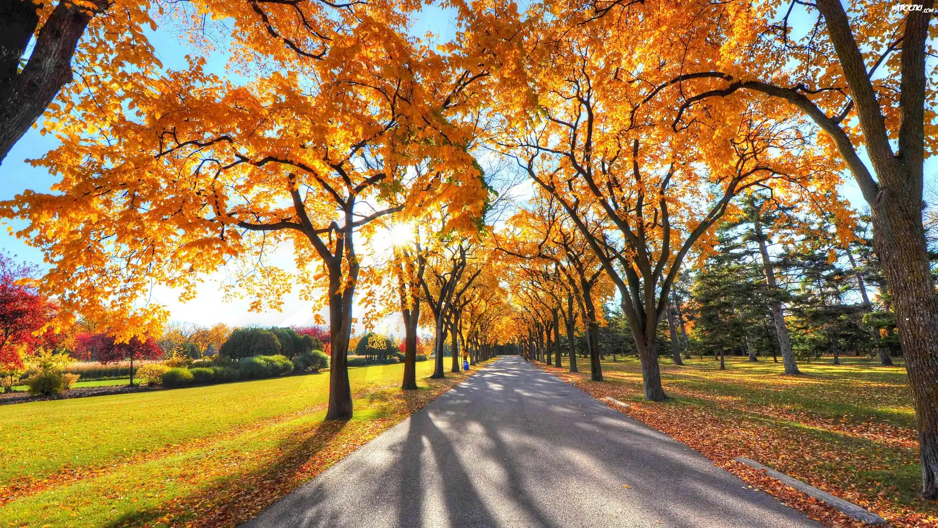 Zdjęcia, Jesień, Droga, Promienie Słońca