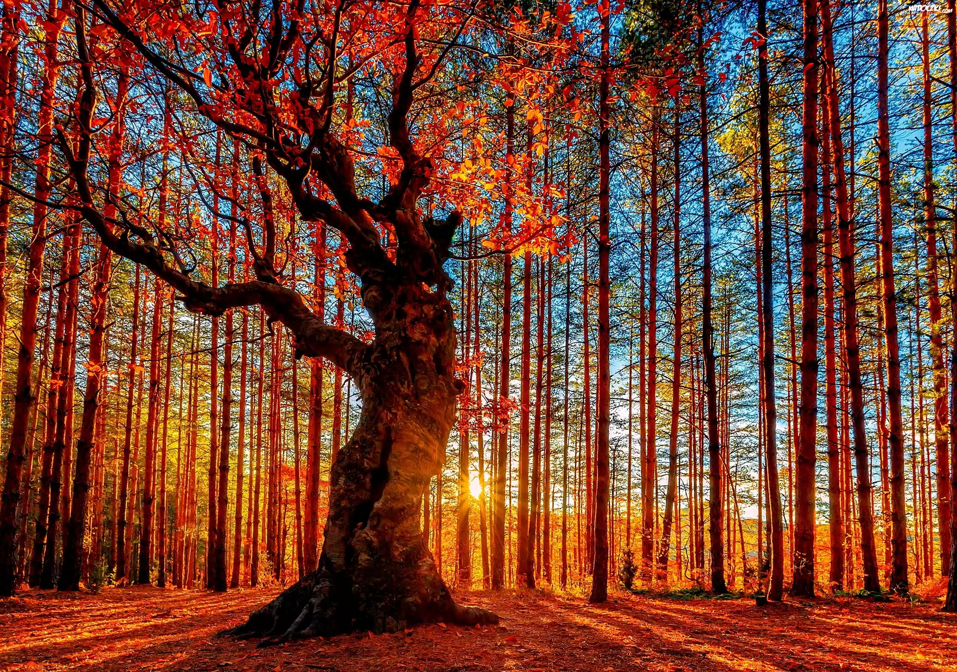 Jesień, Las, Promienie, Słońca