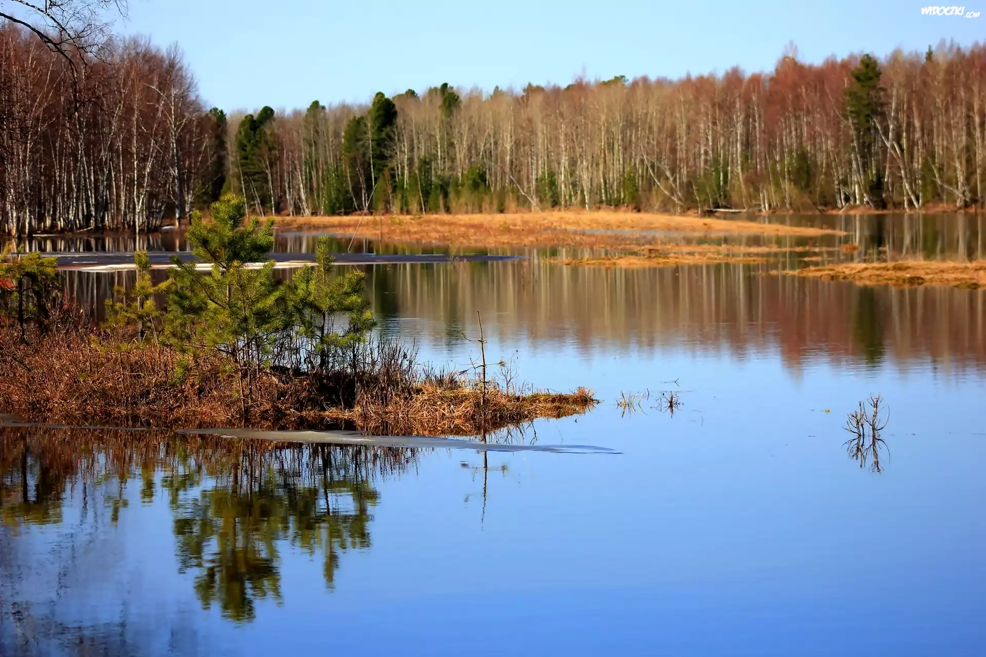 Zdjęcia, Jesień, Las, Rozlewiska, Polana