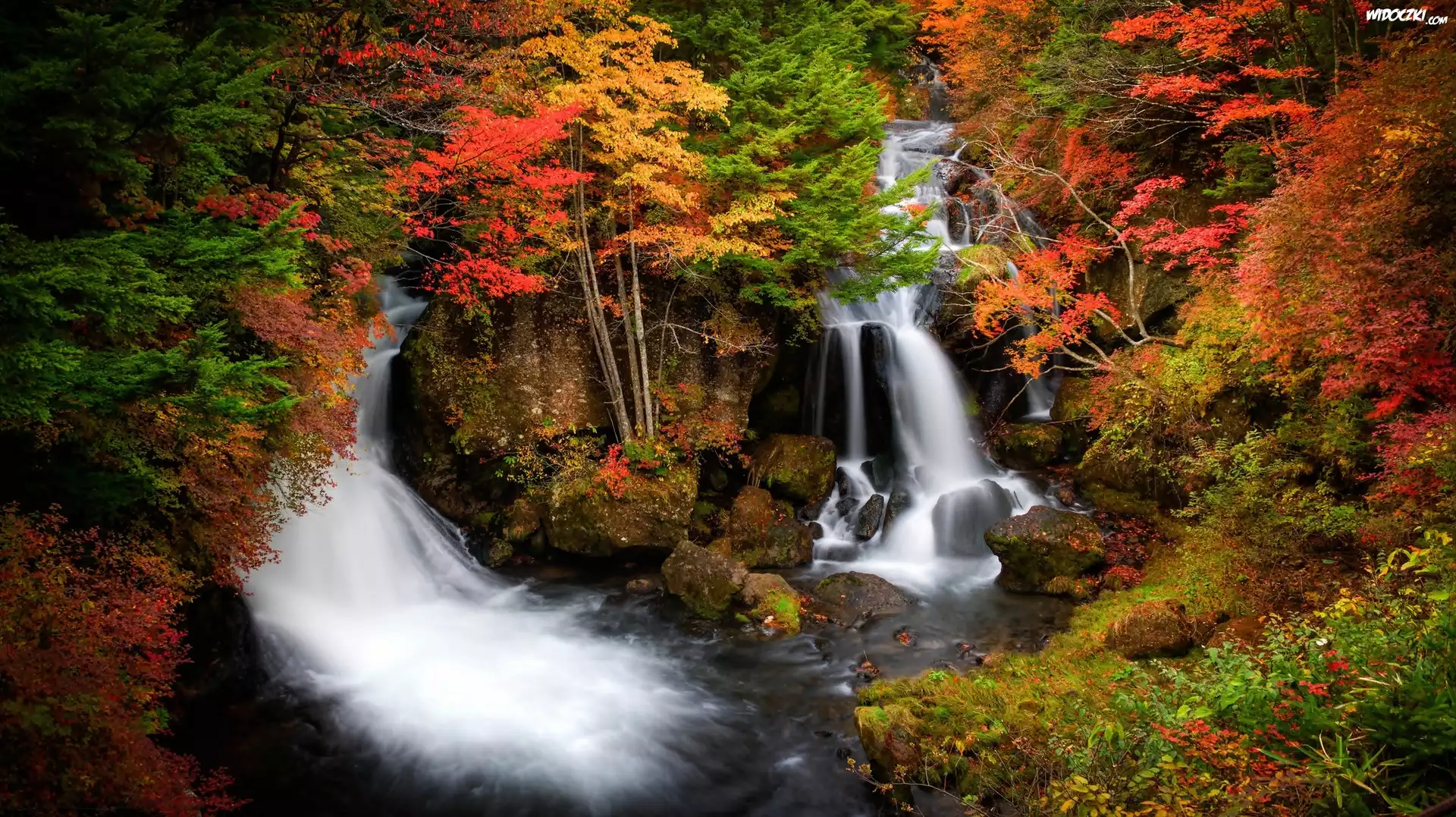 Jesień, Las, Wodospad, Ryuzu, Japonia