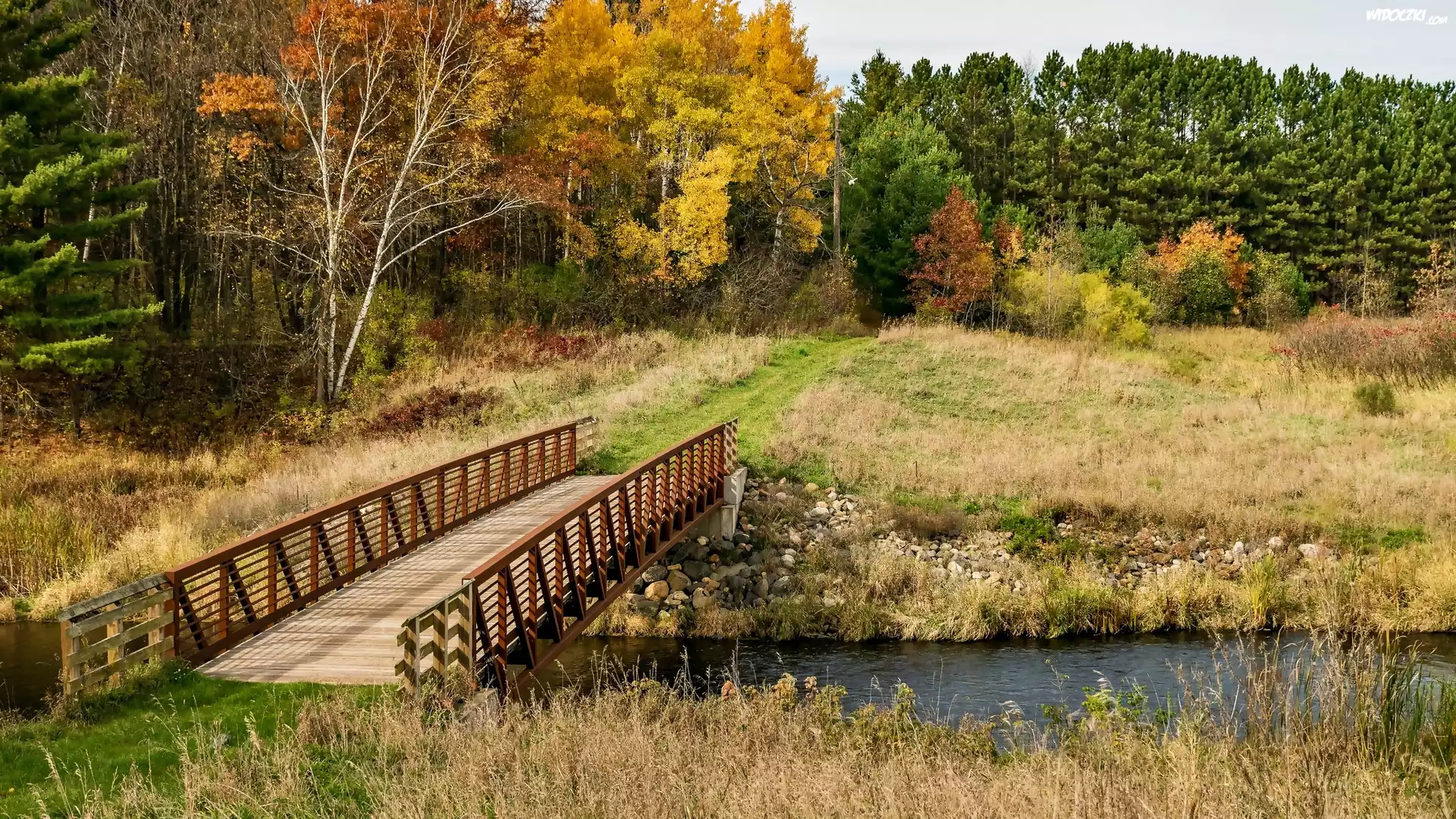 Jesień, Las, Rzeczka, Mostek