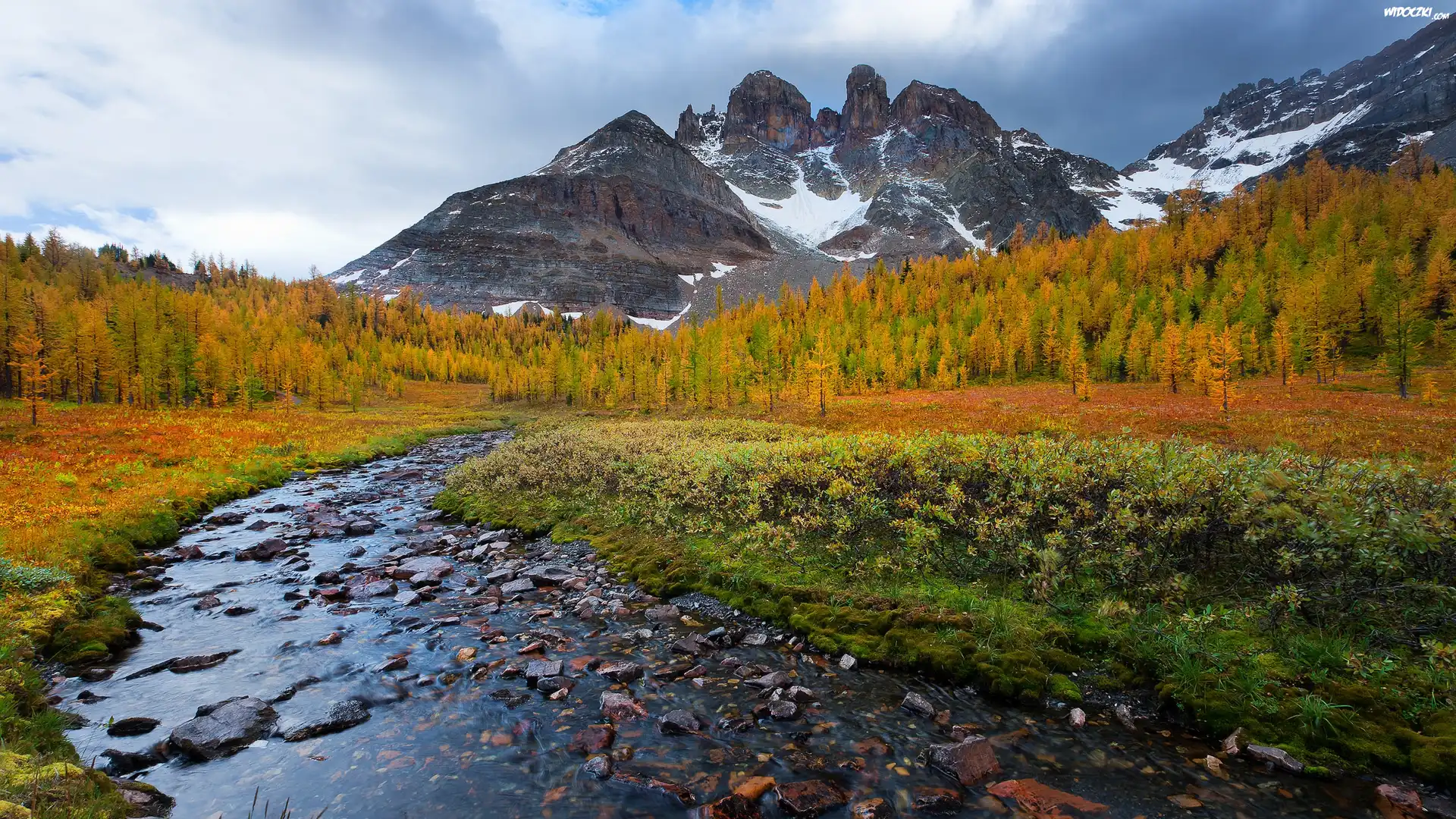 Jesień, Drzewa, Potok, Rzeczka, Góry