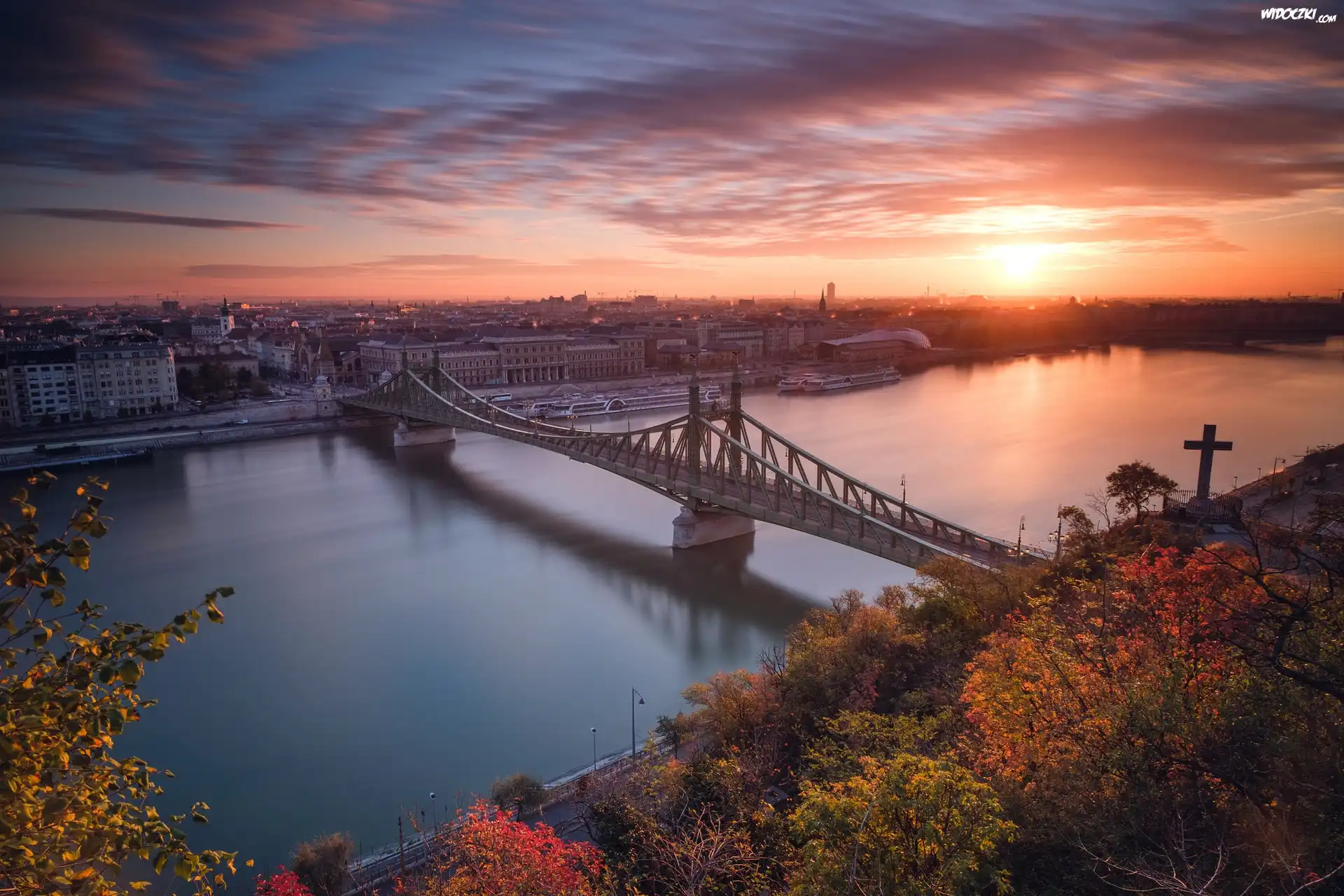 Zdjęcia, Węgry, Budapeszt, Rzeka Dunaj, Most Wolności, Zachód Słońca, Jesień